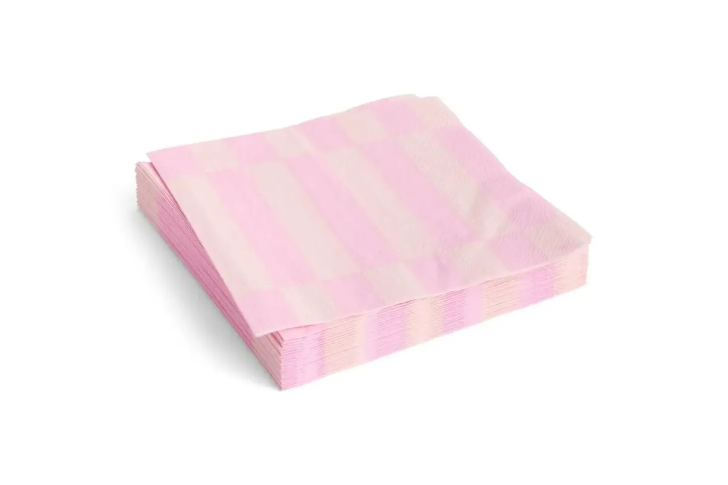 Disse Hay-servietter i tissuepapir kombinerer lyserøde og rosa striber i et stilrent mønster. Med deres kvadratiske form på 33 x 33 cm giver de dig en praktisk størrelse til frokostbordet.