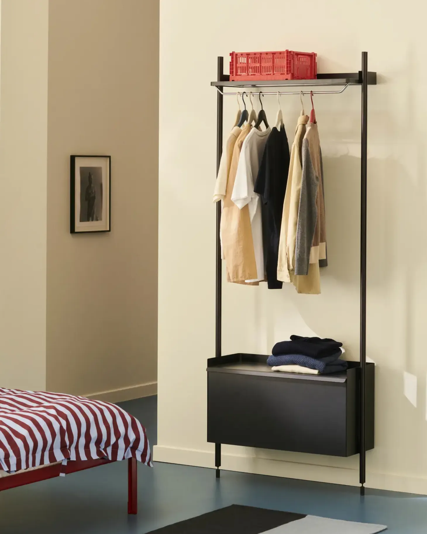 Som en del af Hays Pier System får du en reol, der kan tilpasses dine behov. Den enkelte kolonne giver dig mulighed for at udnytte selv smalle vægge, mens kombinationen af hylde og skuffe sikrer både synlig og skjult opbevaring.