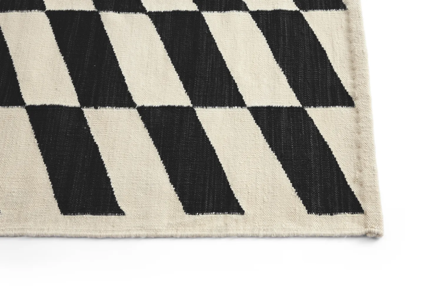 Dette håndlavede tæppe fra Hay er fremstillet af 100 % uld med håndspundet garn. Det diagonale stribemønster i sort og beige tilføjer variation til dit rum.