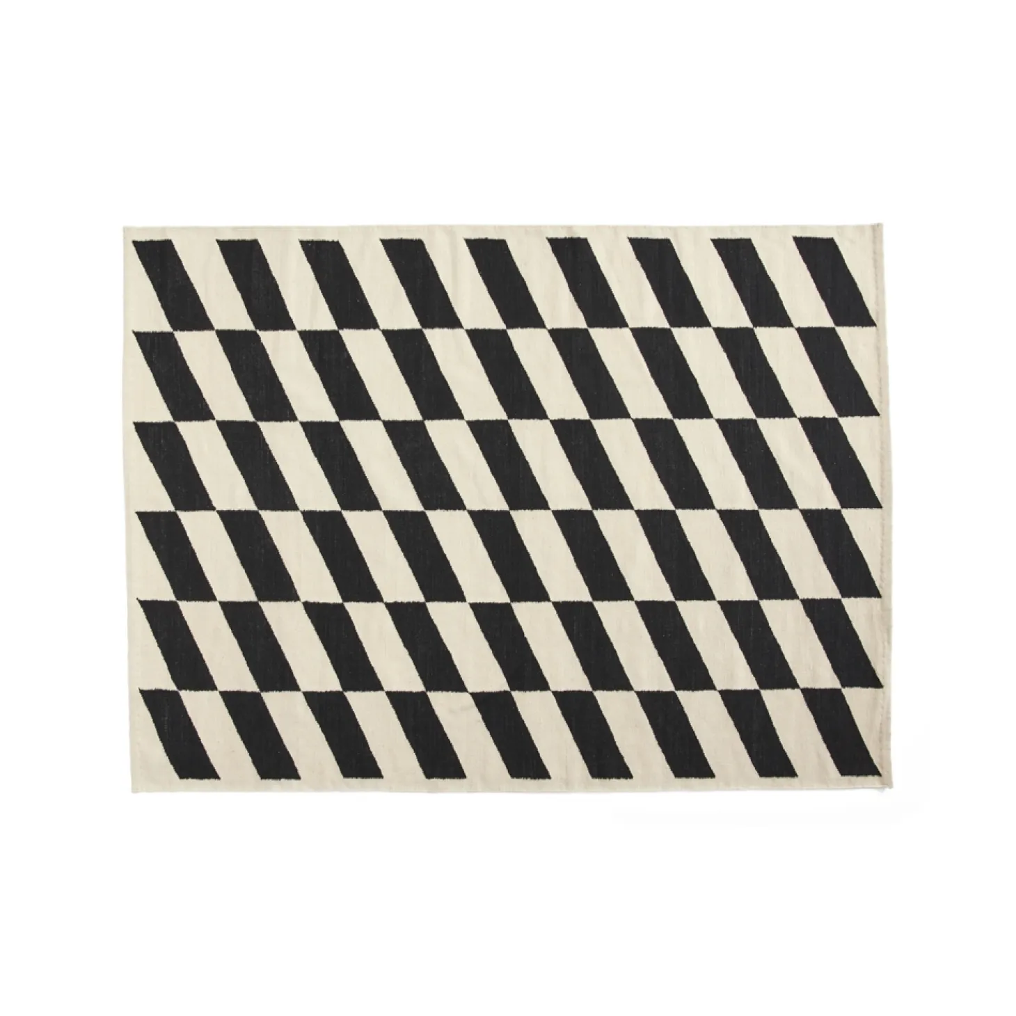 Dette håndlavede tæppe i 100% ren uld kombinerer holdbarhed med naturlig smudsafvisning. Med sine 170 x 240 centimeter danner det grundlag for din indretning, mens det geometriske mønster tilfører karakter.