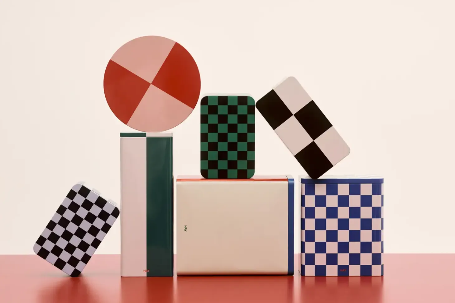 Denne tinbeholder fra Hay er en praktisk opbevaringsløsning til hjemmet. Den har et ternet mønster i rød og lyserød, hvilket giver den et distinkt udseende. Beholderen er designet til at være både funktionel og æstetisk tiltalende.