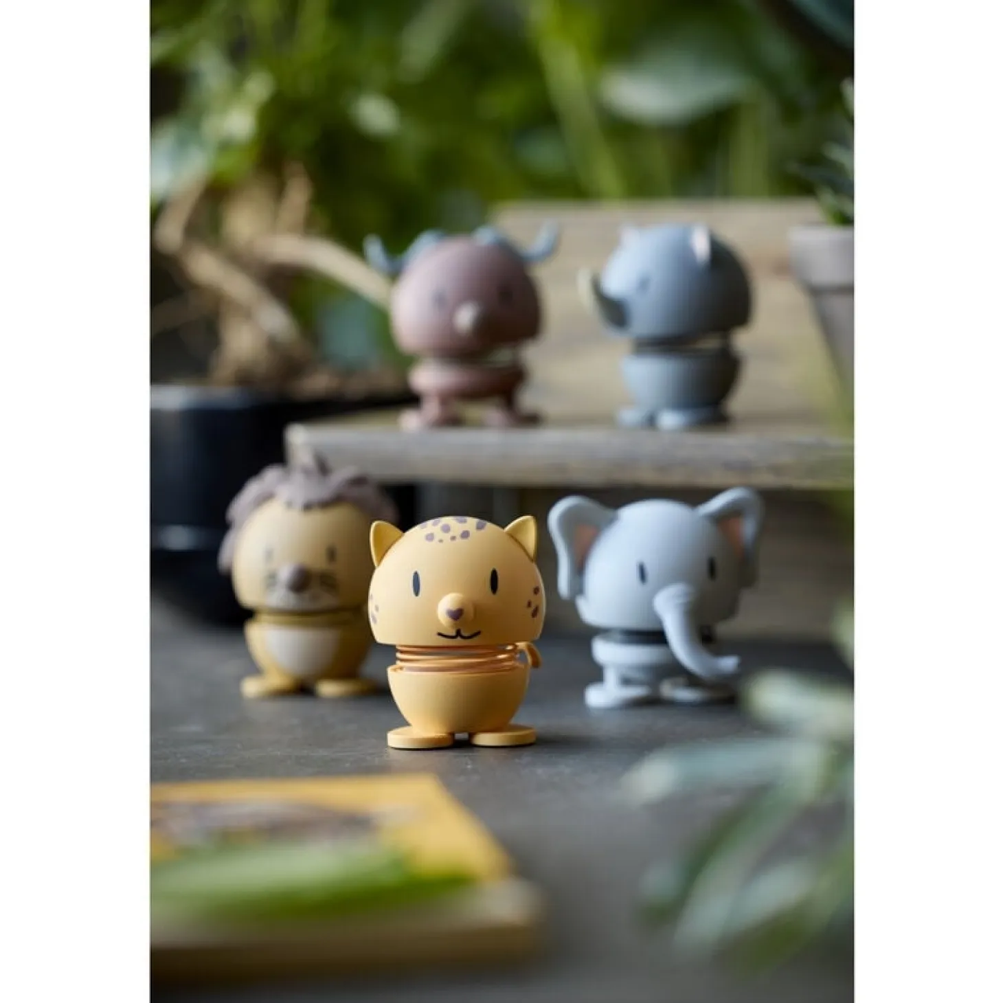 Den lille leopard kombinerer det klassiske Hoptimist-design med et legende dyretema. Fjederen mellem hoved og krop skaber en naturlig bounce-effekt, der giver figuren liv og bevægelse. De karakteristiske pletter og ører fuldender det unikke udtryk.