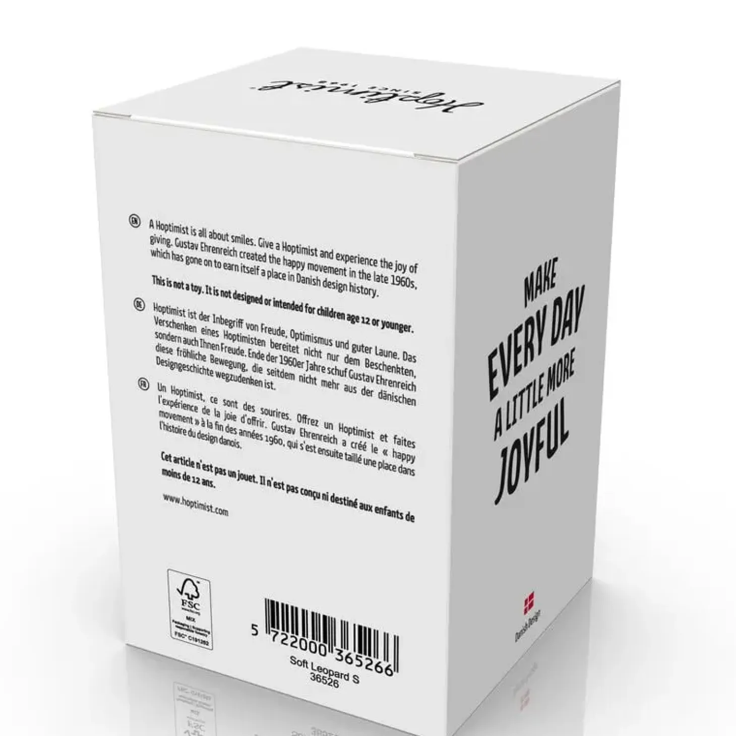 Denne Hoptimist er designet som en dekorativ figur og er ikke beregnet som legetøj. Du kan placere den på din hylde, dit skrivebord eller vindueskarmen, hvor den vil bringe et smil frem med sin karakteristiske bounce-bevægelse og sit søde leoparddesign.