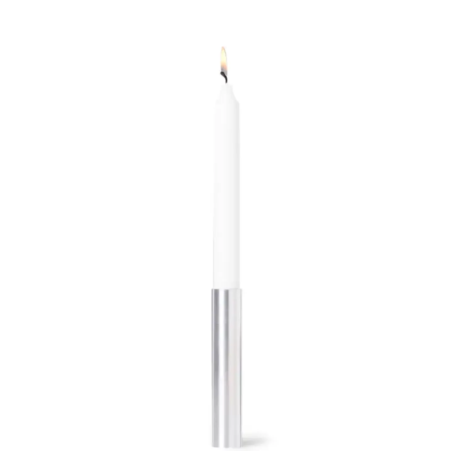 Denne lysestage er fremstillet i massivt rustfrit stål, der sikrer stabilitet og holdbarhed ved daglig brug. Med en højde på 14 cm er den designet til høje, slanke lys og tilføjer et minimalistisk udtryk til dit hjem.