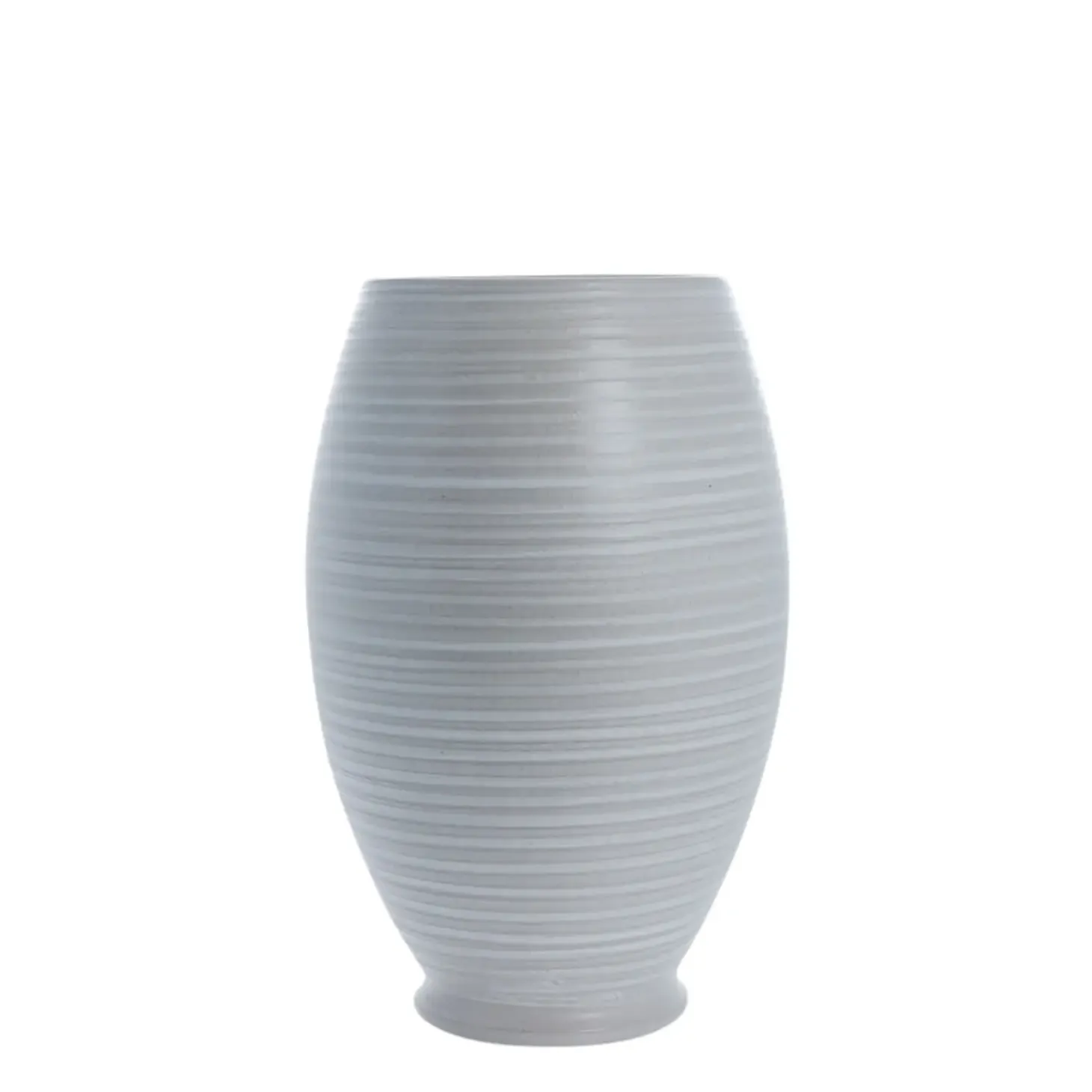 Lene Bjerre – Catharinia skjuler H35 cm er en stilfuld tilføjelse til boligindretningen. Denne keramiske vase har en slank silhuet og raffinerede, horisontale riller, der skaber et interessant visuelt udtryk. Den neutrale farvetone gør den let at integrere i forskellige indretninger.
