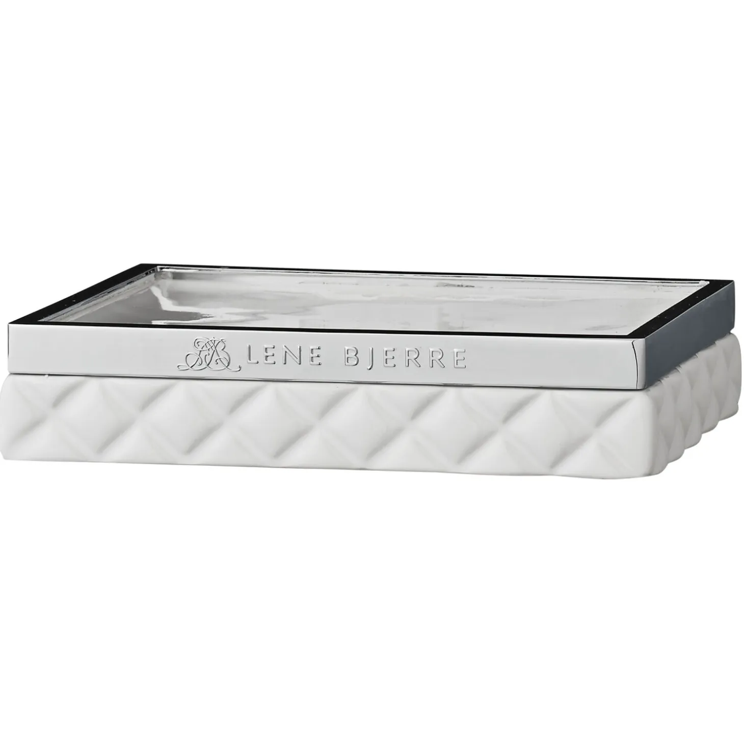 Harlekin mønstret hvid keramik sæbeholder med sølv top. Denne Portia sæbeholder måler L13xB10xH3 cm. og er perfekt til opbevaring af sæben på badeværelset, hvor den vil være både praktisk og dekorativ på én og samme tid. Du kan også bruge sæbeholderen til opbevaring af smykker og ringe eller måske noget helt tredje.