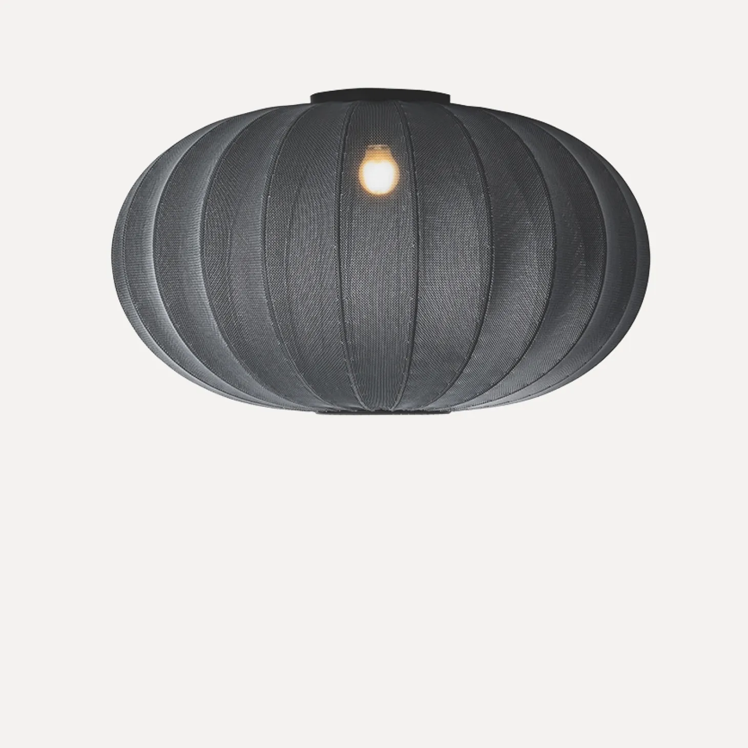 Den ovale form giver lampen et karakteristisk udtryk, der passer ind i mange forskellige indretningsstile. Den sorte farve er neutral og alsidig, mens den strikkede overflade skaber en interessant tekstur. Dette design spreder lyset på en behagelig måde i dit rum.