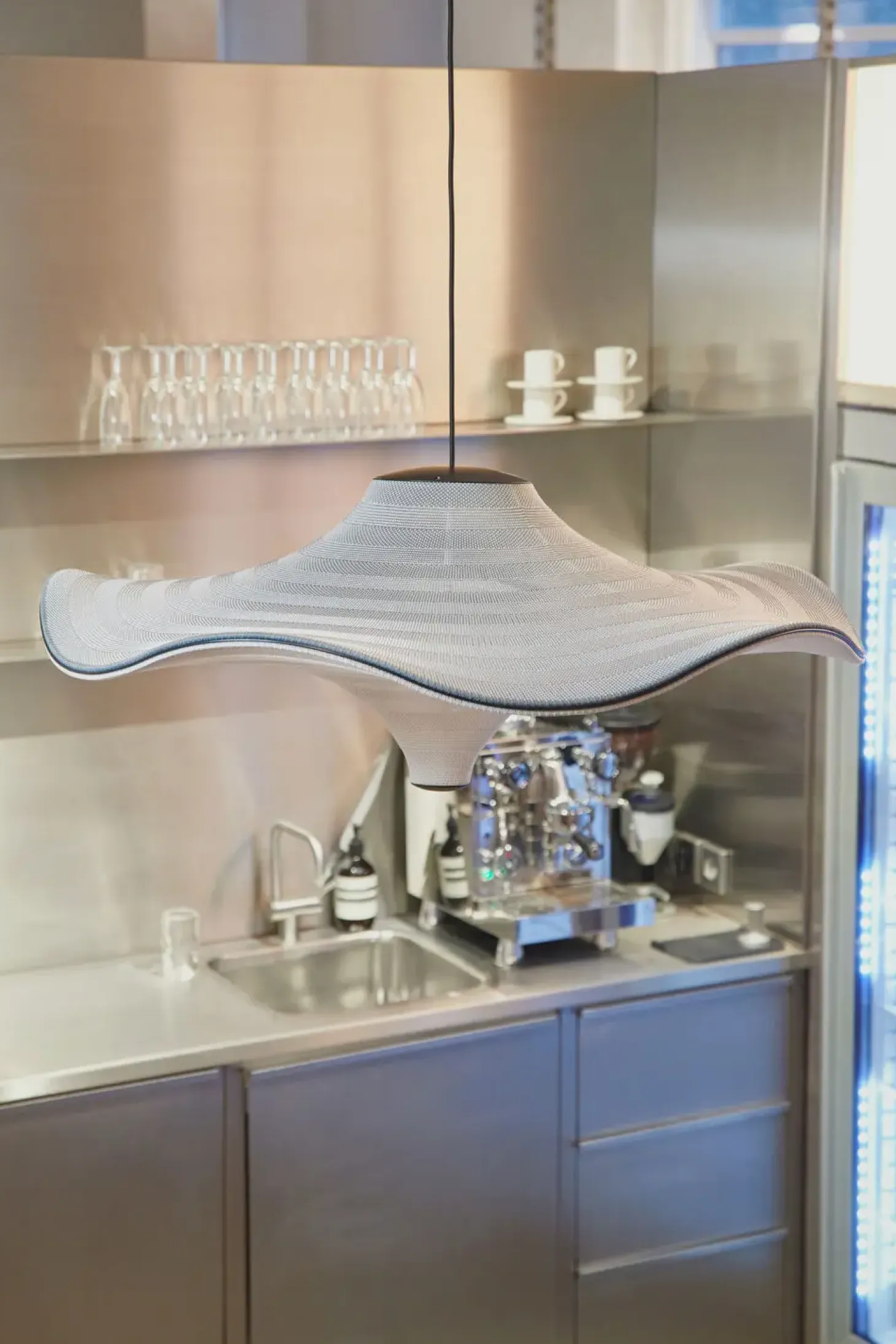 FLYING er en familie af skulpturelle pendellamper med en blød, organisk form. Når de hænger, ser de ud til at svæve smukt i luften. FLYING lamperne er designet, lavet og produceret i Danmark med bæredygtighed for øje. Lampeskærmen er skabt via en 3D-strikkeproces, der omdanner garnet direkte til det færdige produkt, så der ikke går materiale til spilde. LED-lyskilden er indbygget i toppen af lampen og spreder blødt lys gennem den strikkede bund. FLYING lamperne leveres også fladpakket i pap, hvilket gør dem kompakte og mere bæredygtige i forhold til transport og distribution.