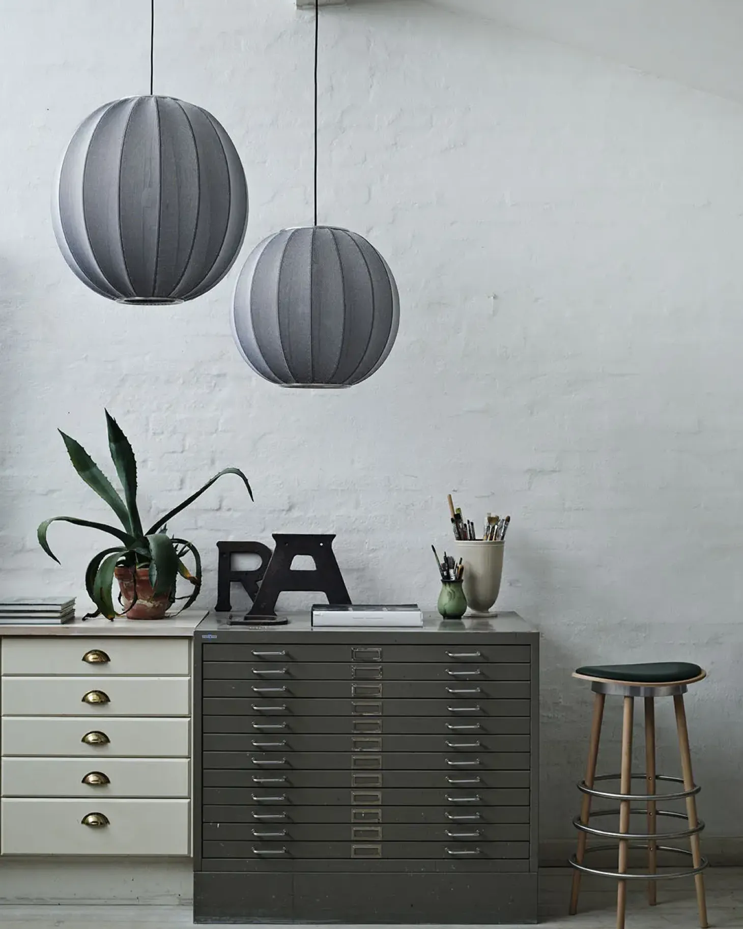 Selvom strikning er et gammeldags håndværk, er det endnu ikke blevet udforsket i moderne designlamper – en vision realiseret af Made by Hand. Knit-Wit lampens strikkede materialitet fordeler lyset gennem garnets mønster, hvilket gør hver lampe unik. Produceret i Danmark, præsenterer Knit-Wit familien nu en opgraderet indbygget dæmpbar LED-modul, som giver endnu bedre fleksibilitet til at skabe den perfekte lysindstilling. Tilgængelig i en række størrelser og farver, passer dens varme, lette design naturligt ind i både private og offentlige rum.