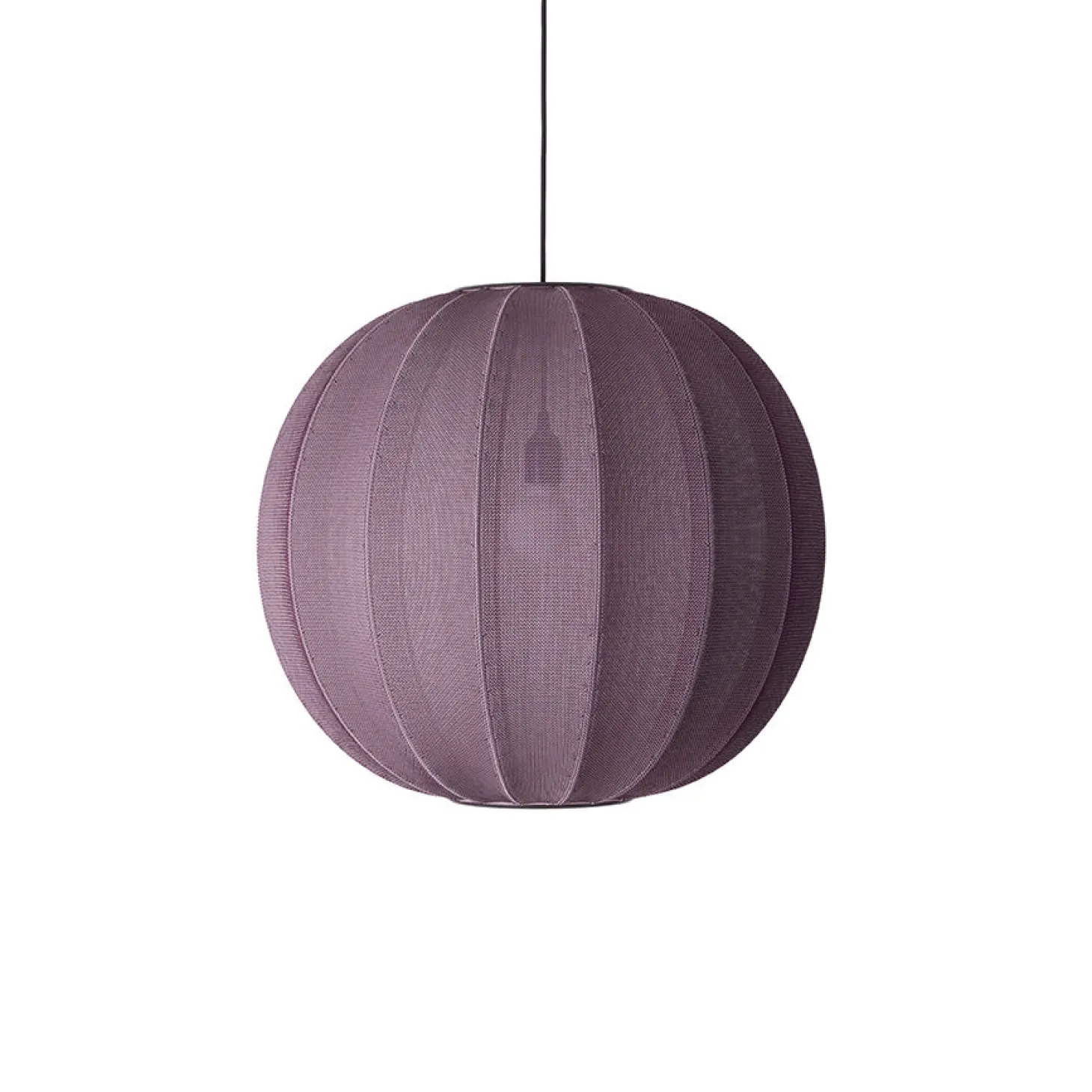 Denne burgundy røde pendel kombinerer 3D-strikket polyester med dansk håndværk. Det brandsikre, genanvendte materiale skaber en særlig lysfordeling gennem den strikkede overflade.