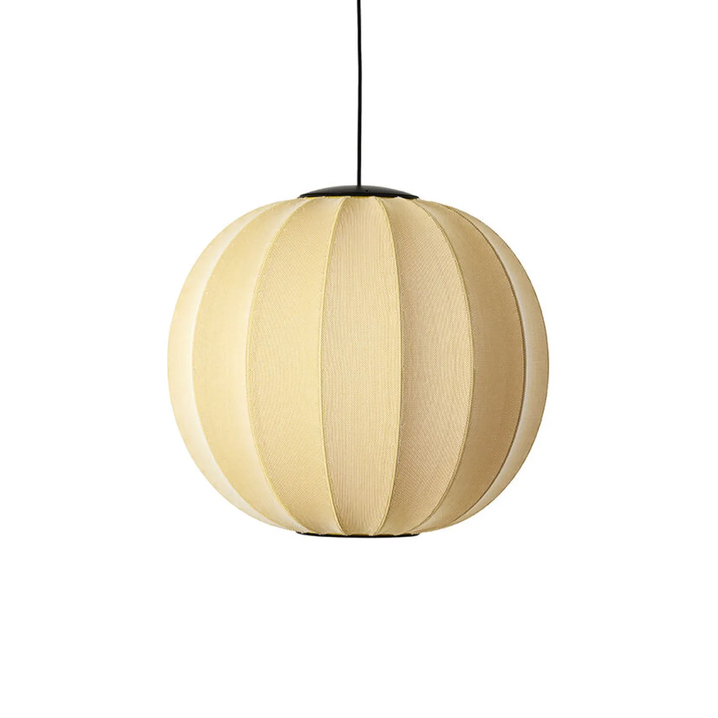 Lampen er lavet af brandsikkert, genanvendt polyester, hvilket gør den både sikker og miljøvenlig. Den strikkede konstruktion sikrer, at lyset fordeles jævnt gennem hele lampens overflade, så du får en behagelig belysning uden mørke områder.