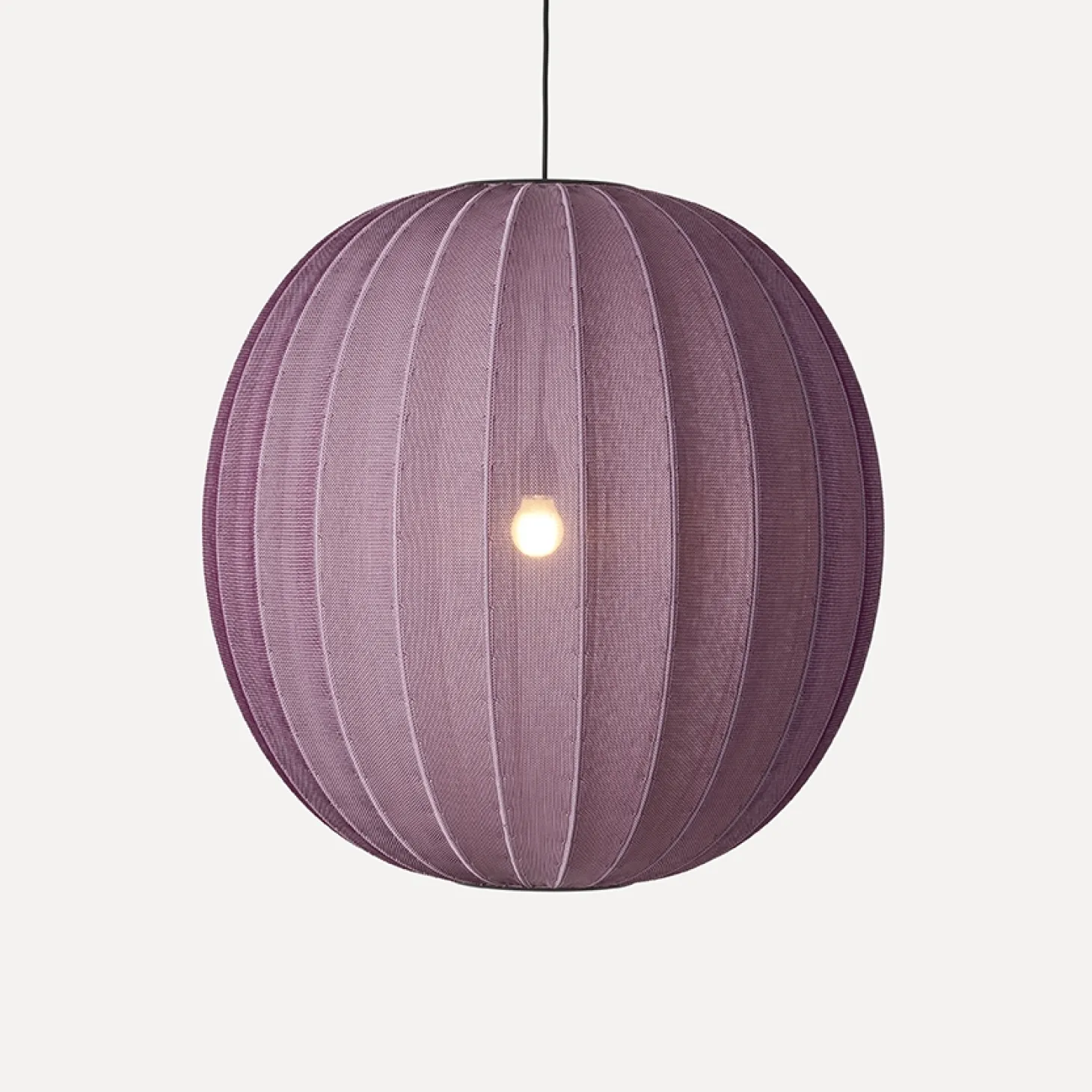 Du bemærker et særligt spil i lyset, når det filtreres gennem den strikkede struktur. Burgunderfarven tilfører et varmt udtryk til dit rum, mens den runde form sikrer en god spredning af lyset.