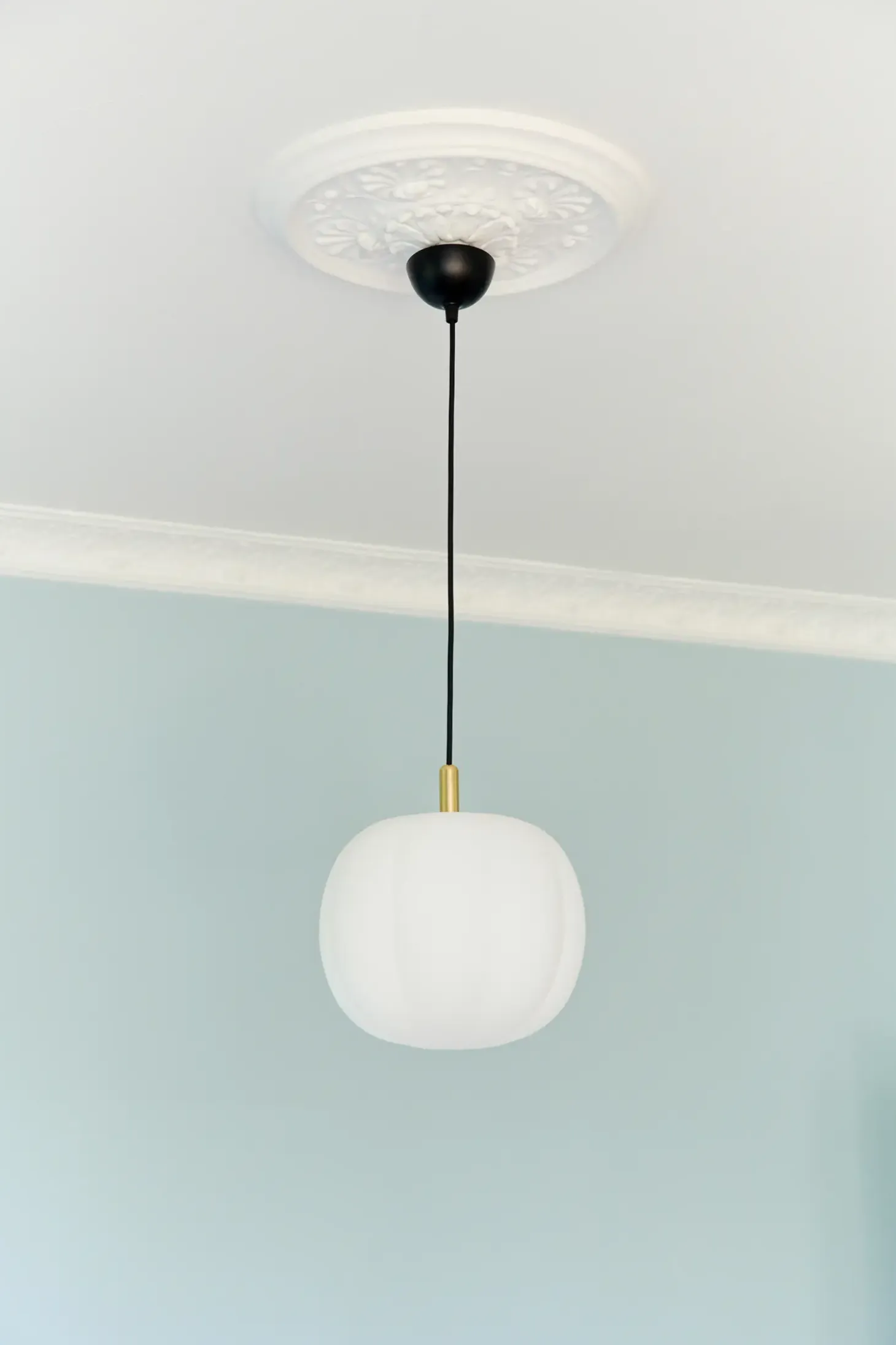 Opalglas giver en jævn lysfordeling uden blænding. Lampens størrelse gør den velegnet til spisebordet og køkkenøen, hvor du har brug for godt arbejdslys. Du får både funktionel og stemningsskabende belysning.