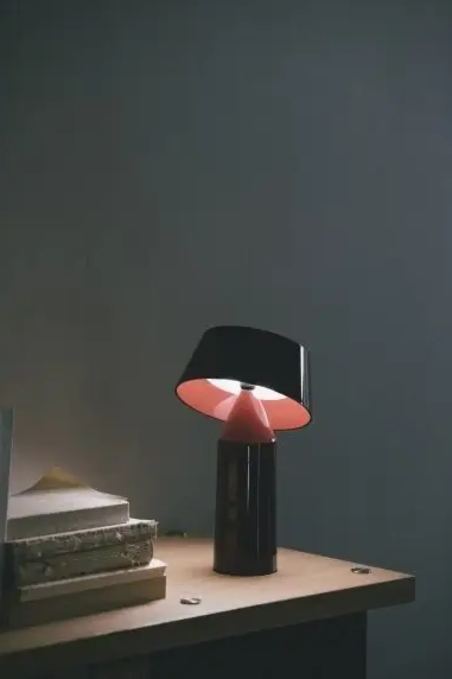Bordlampen er opladelig og vejer ikke så meget, så den er nem at tage med på farten.