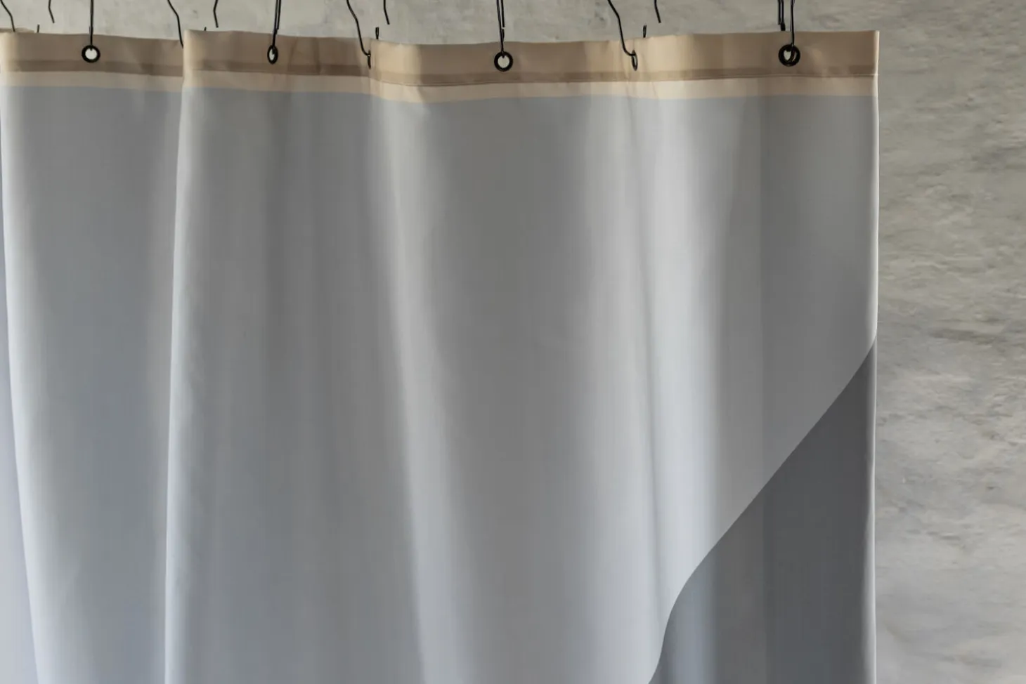 Badeforhænget er fremstillet i 100 % polyester og er skimmel- og vandafvisende. Badeforhænget har sorte metalringe og fås i størrelse 150 x 200 cm.