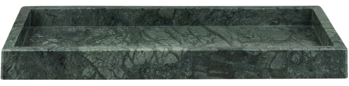 Den dekorative MARBLE-bakke er lavet af smukt grønt marmor og har et væld af anvendelsesmuligheder. Den er ideel til at organisere plejeprodukter på badeværelset, holde styr på olier og krydderier i køkkenet eller fungere som en dekorativ base for lys og småting i stuen.Marmor er kendt for sine naturlige variationer i farve og struktur, hvilket gør hver bakke helt unik. Bakken er med sin tyngde meget robust, og marmoret bliver blot smukkere med tiden.
