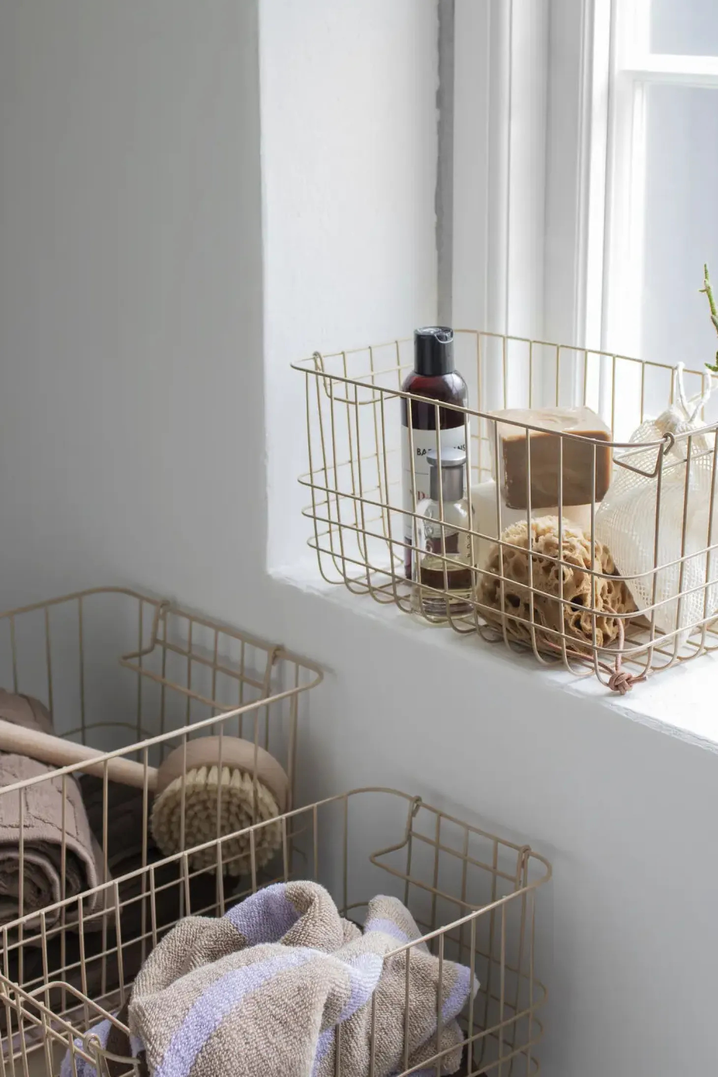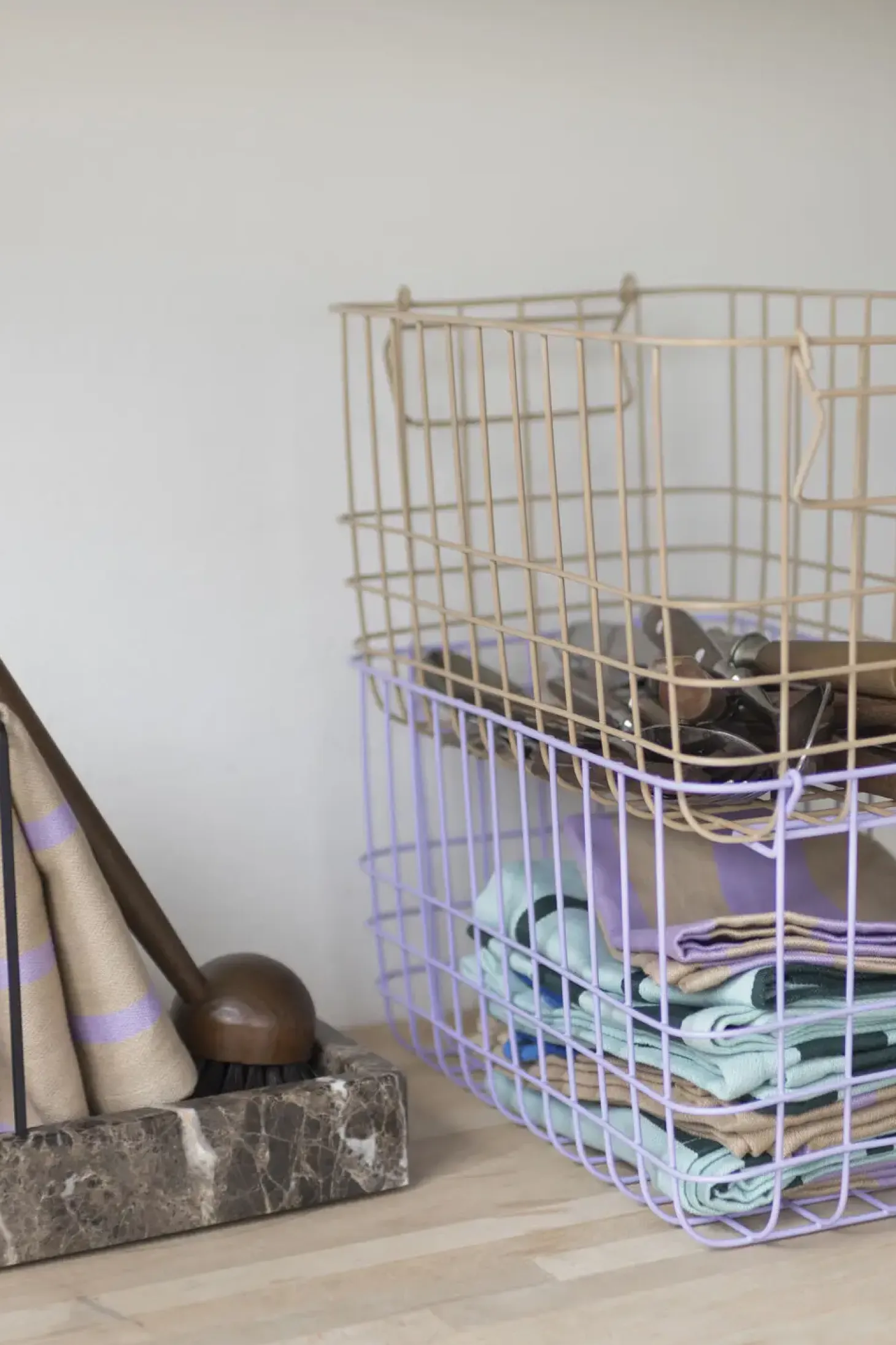 STORE-IT fra Mette Ditmer er en fin trådkurv designet i metal og i den smukkeste sandfarvede nuance. Den alsidige kurv kan med sin praktiske størrelse rumme alt fra vaskeklude og skønhedsprodukter på badeværelset til organisering af kontorartikler på kontoret eller vanter, huer og tørklæder i entréen.