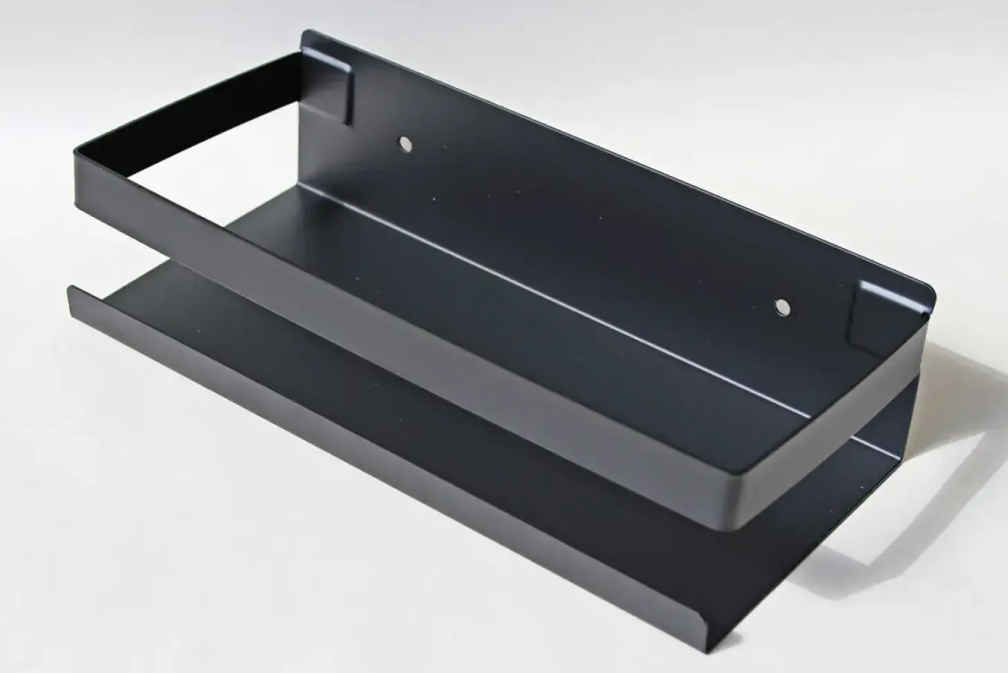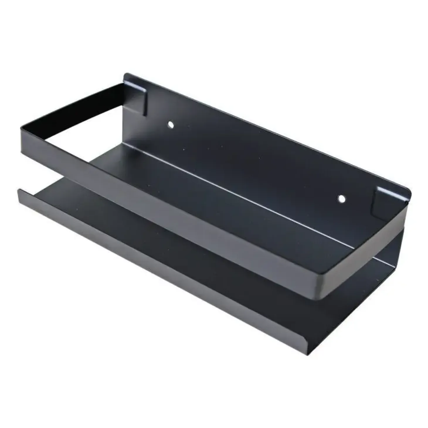 Moudhome BATH-hylden i sort rustfrit stål tilbyder en elegant løsning til dit badeværelse eller køkken. Med sin kompakte størrelse og dobbeltlagsstruktur kombinerer denne hylde praktisk opbevaringsplads med et sofistikeret design. Hylden har en dobbeltlagsstruktur med hævet forkant, hvilket giver både stabilitet og funktionalitet. Den hævede forkant på 5,8 cm fungerer som en effektiv barriere, der forhindrer genstande i at glide af i fugtige miljøer, hvilket gør den ideel til brusekabinen eller over håndvasken.