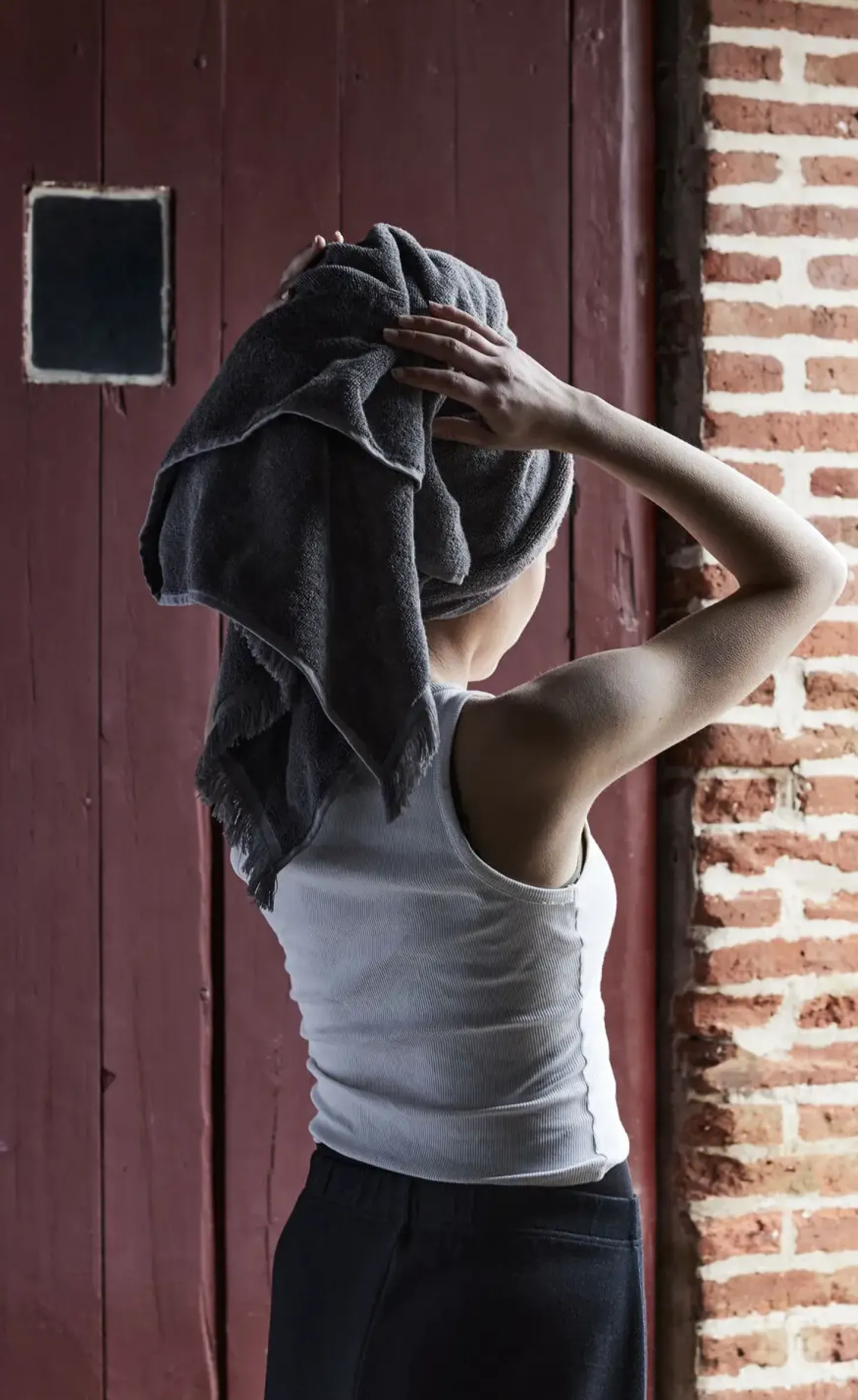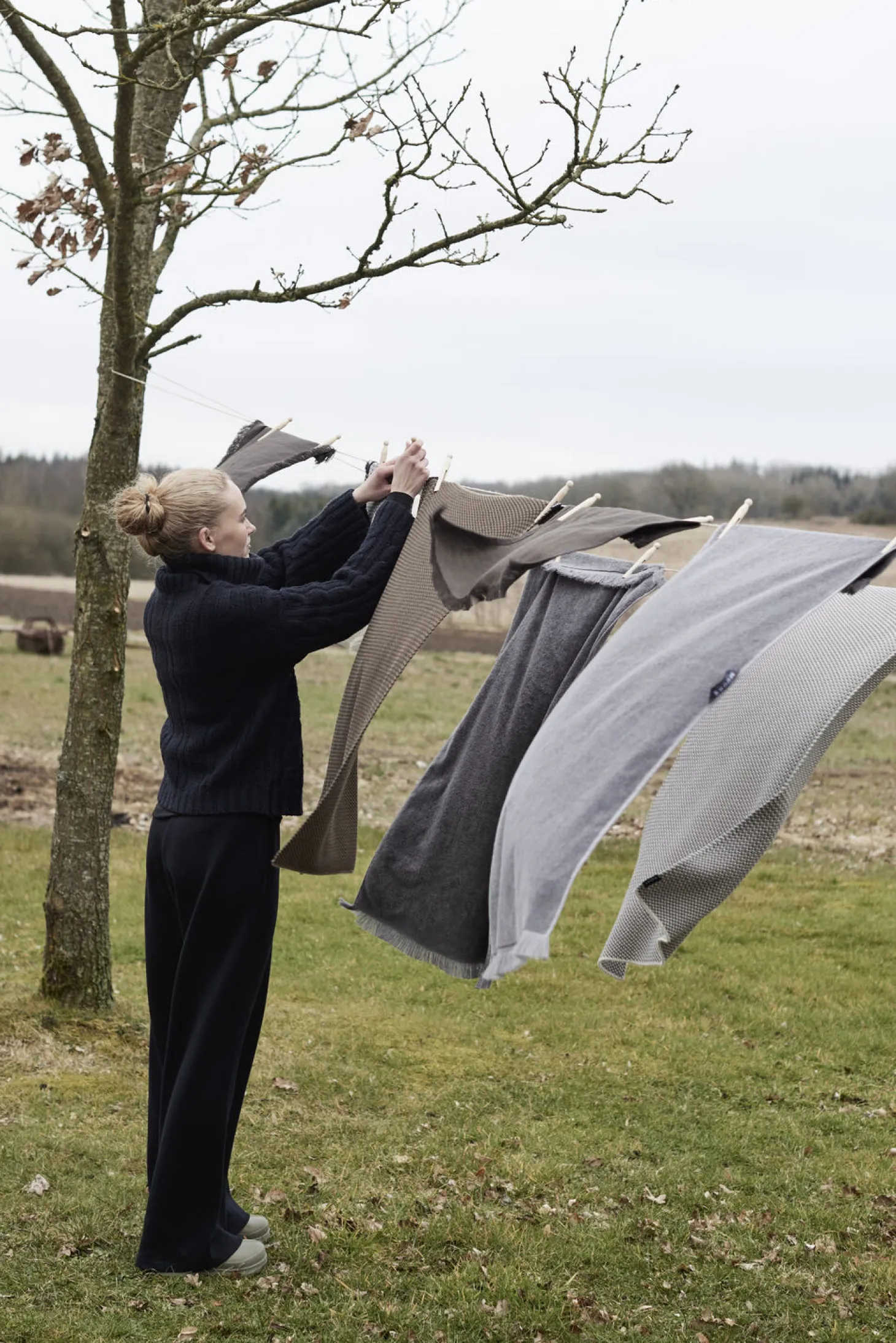 Der er intet mere beroligende og luksuriøst end at tørre sig i et Aiho håndklæde efter et opfriskende brusebad. Deres tykke, bløde kvalitet giver en følelse af varme og kærlig omsorg, der beroliger sjælen og skaber en dyb følelse af ro og velvære.Håndklædet er fremstillet af 100 % økologisk bomuld, som er meget absorberende og skabt til at holde. Aiho håndklædet er designet i en æstetisk mørkegrå farve med dekorative frynser i hver ende, der understreger seriens afslappede udtryk. Designets diskrete udtryk tilføjer alsidighed og bringer komfort og varme til hverdagen på badeværelset. Der er en praktisk strop i midten af håndklædet. Tip: Læg håndklæderne i koldt vand i 24 timer, inden du vasker dem første gang. Fibrene åbner sig og giver en bedre sugeevne. Derudover fjerner det overflødig farve, så dine håndklæder ikke smitter af. Vask håndklæderne ved 40°C de første gange for at skåne farven og overfladen.Størrelse: 70×140 cmMateriale: 100% økologisk bomuld. Kvalitet: 550 gsm.Plejeanvisning:Vaskes ved 60 grader. Håndklædet kan tørretumbles. Vaskes med samme farver. Design: Kira Usbeck