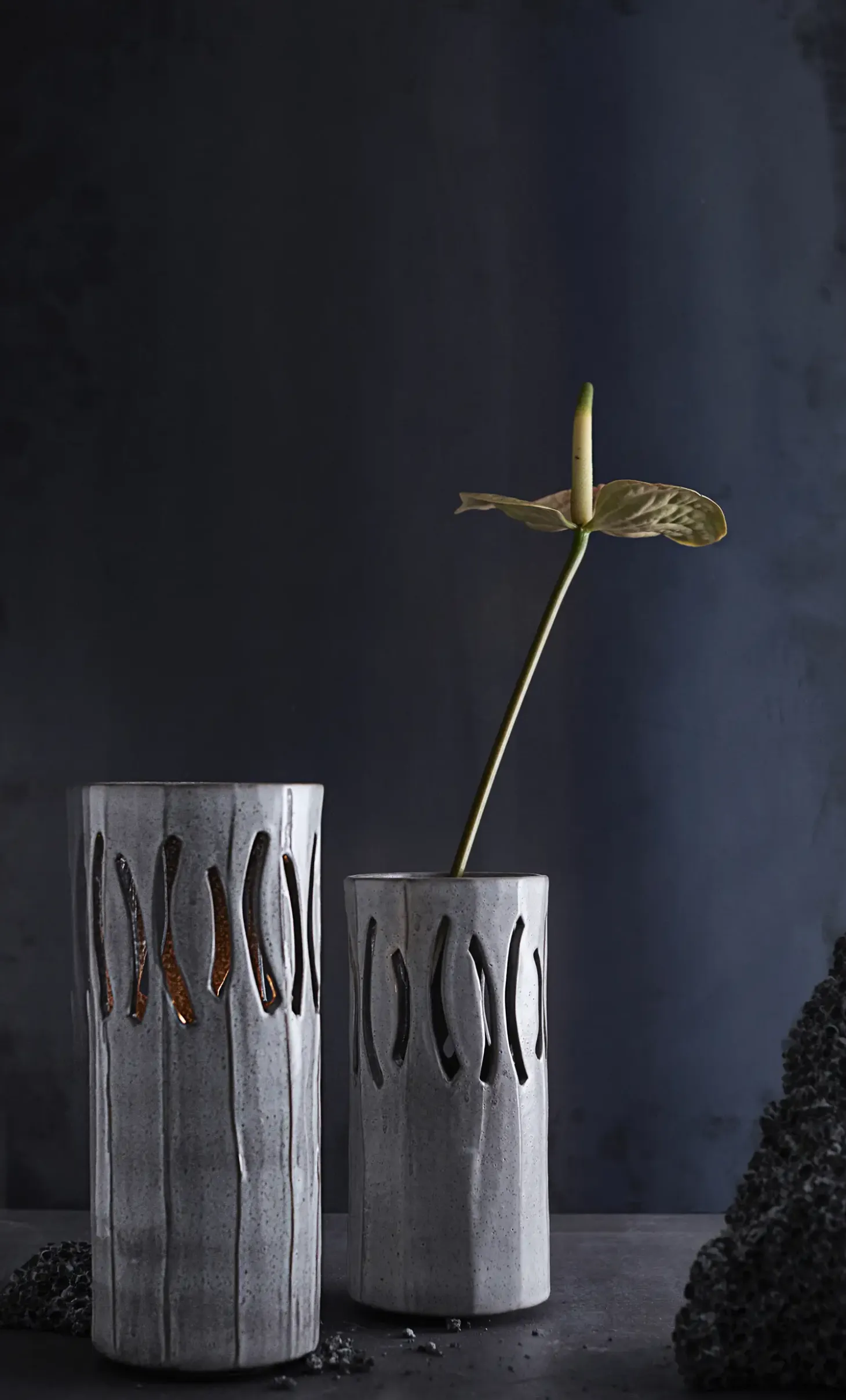 Gaia-lanternen er omhyggeligt formet af stentøj og håndglaseret for at opnå en lys, silkeblød overflade. De vertikale udskæringer i den øverste del skaber et interessant spil af lys og skygge, der kan tilføje dybde og karakter til ethvert rum. Denne særlige kombination af materiale og design gør hver lanterne til et lille kunstværk i sig selv.