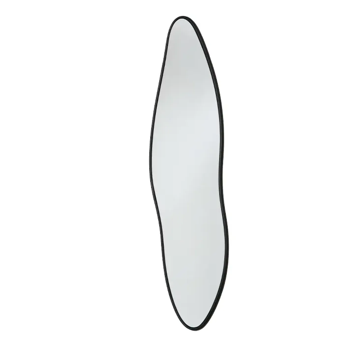 Spejlet inviterer til at lade flydende former berige indretningen, hvilket gør spejlet til et dekorativt vægelement. Spejlet kombinerer organiske former med et klassisk design i metalramme.