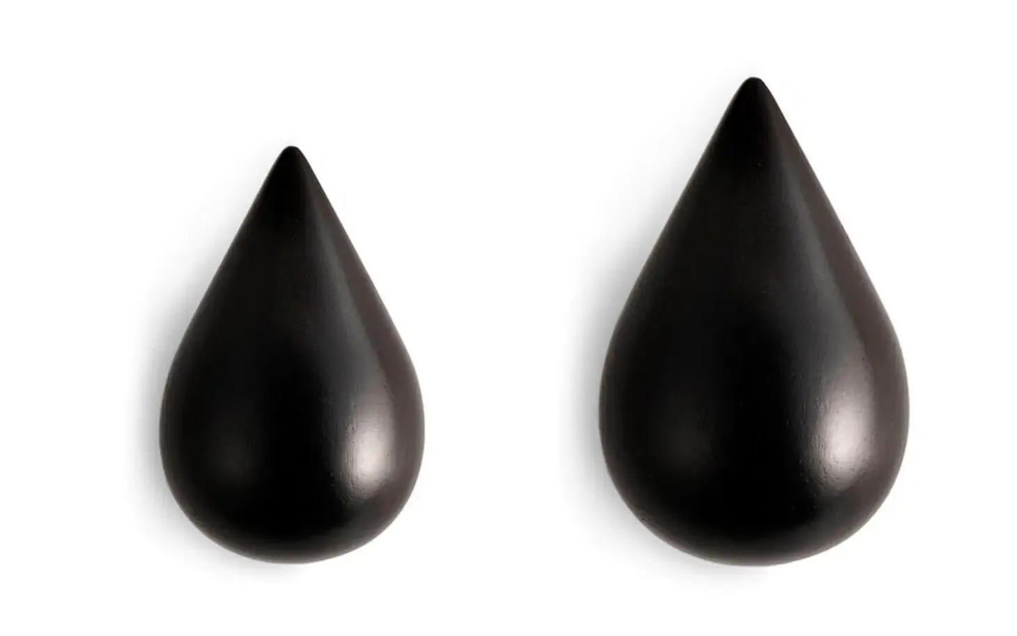 De dråbeformede Dropit Hooks fra Normann Copenhagen giver dig en anderledes måde at organisere dit hjem på. Hver pakke indeholder to træknager, der med deres karakteristiske form skaber et særligt udtryk på væggen.