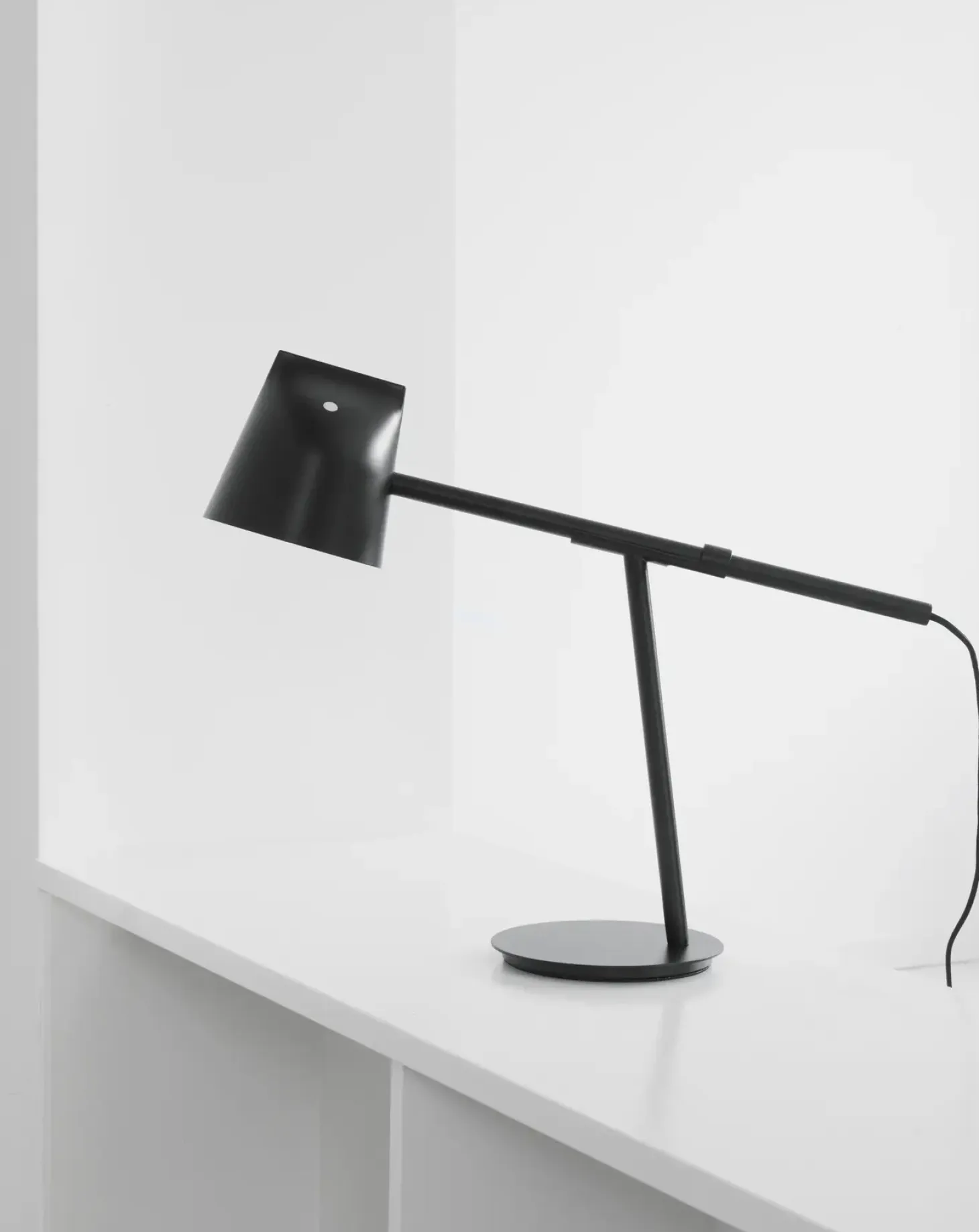 Momento LED bordlampen er designerne Daniel Debiasi og Federico Sandris idé om en ny og forenklet version af den klassiske kontorlampe. I Momentos design er de typiske tekniske kontorlampedetaljer erstattet af en elegant afbalanceret arkitektur, som er let at tilpasse til øjeblikkets lysbehov. Den enkle konstruktion og integrerede detaljer skaber et let og luftigt design, og den finurlige tweekede lampetop tilføjer noget blødt og atmosfærisk til Momentos rene visuelle indtryk. Momento bordlampen er designet med en energieffektiv LED-lyskilde og integreret dispersionslinse, som skaber et attraktivt og behageligt lys.