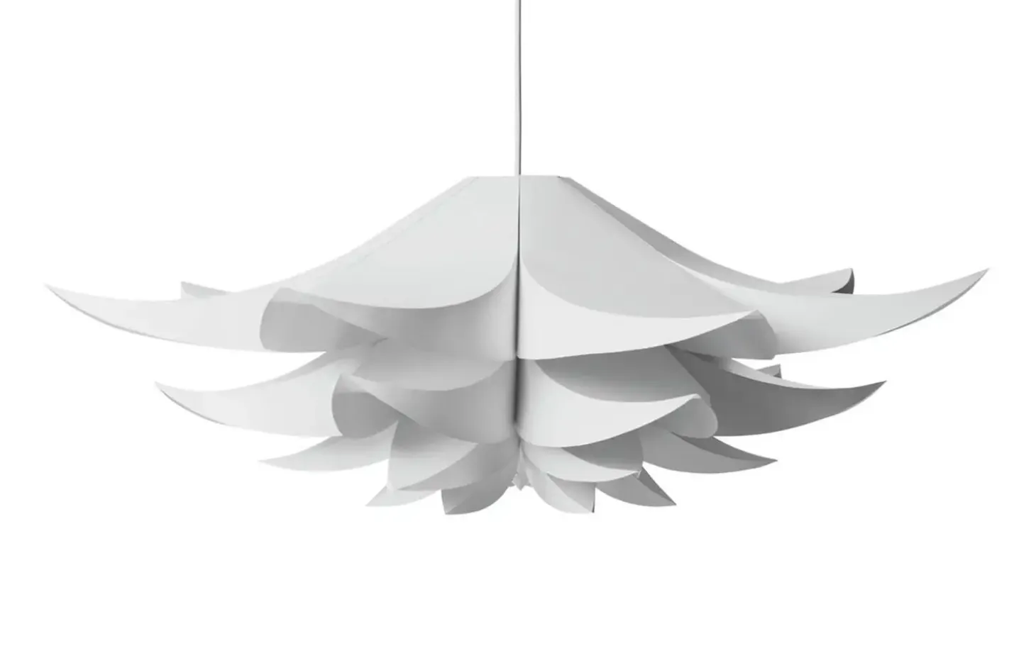 Denne skulpturelle pendel spreder et blødt og behageligt lys i rummet. Det lagdelte design med blomsterlignende blade skaber en harmonisk lysfordeling, der giver dit rum en rolig og indbydende atmosfære.