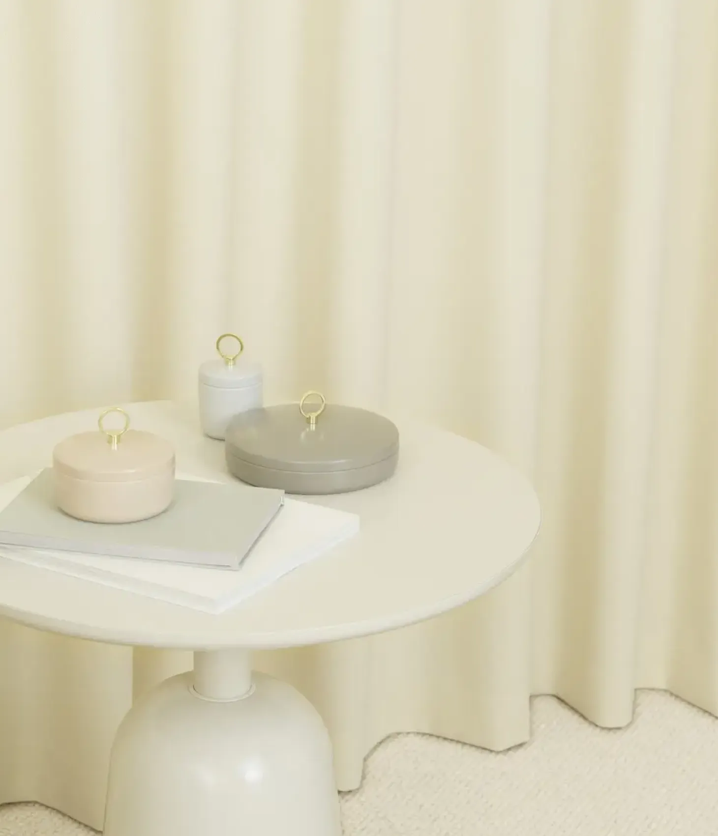 Ring er en serie af små, elegante æsker til opbevaring af små personlige ejendele såsom smykker, kosmetik og papirvarer. Ringboksen er lavet af blankt, pulverlakeret stål, fås i tre forskellige størrelser i jordfarver af sand, grå og taupe. Den gyldne ring på låget tjener et funktionelt formål og er samtidig en dekorativ detalje.