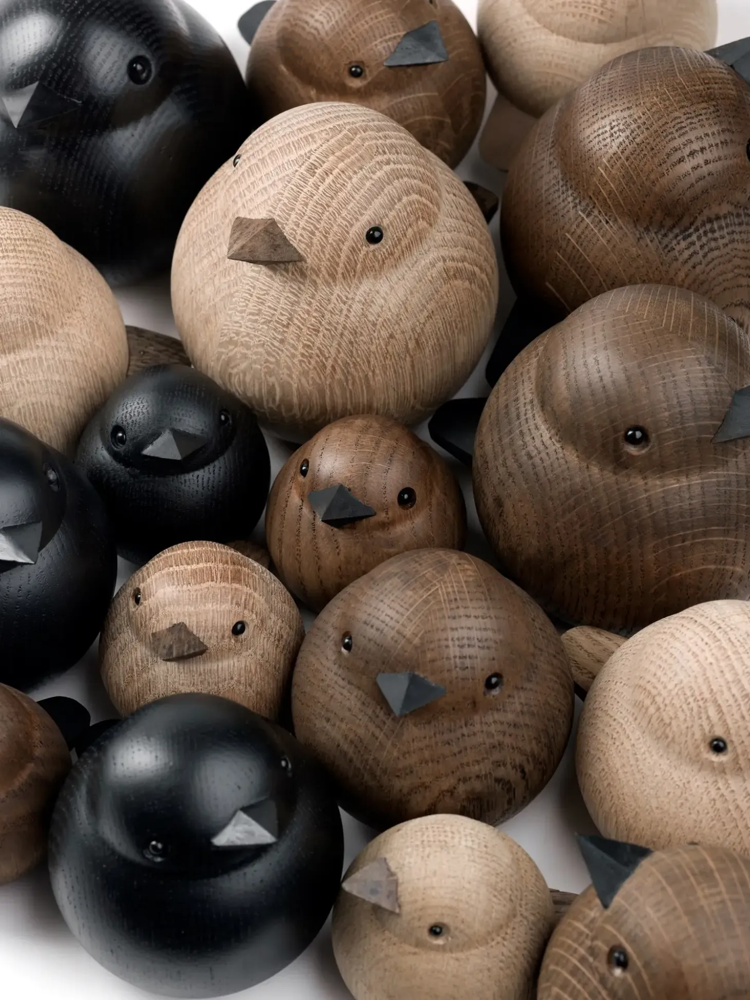 Spurvene er lavet i massivt træ, og er håndlavet af trædrejere.