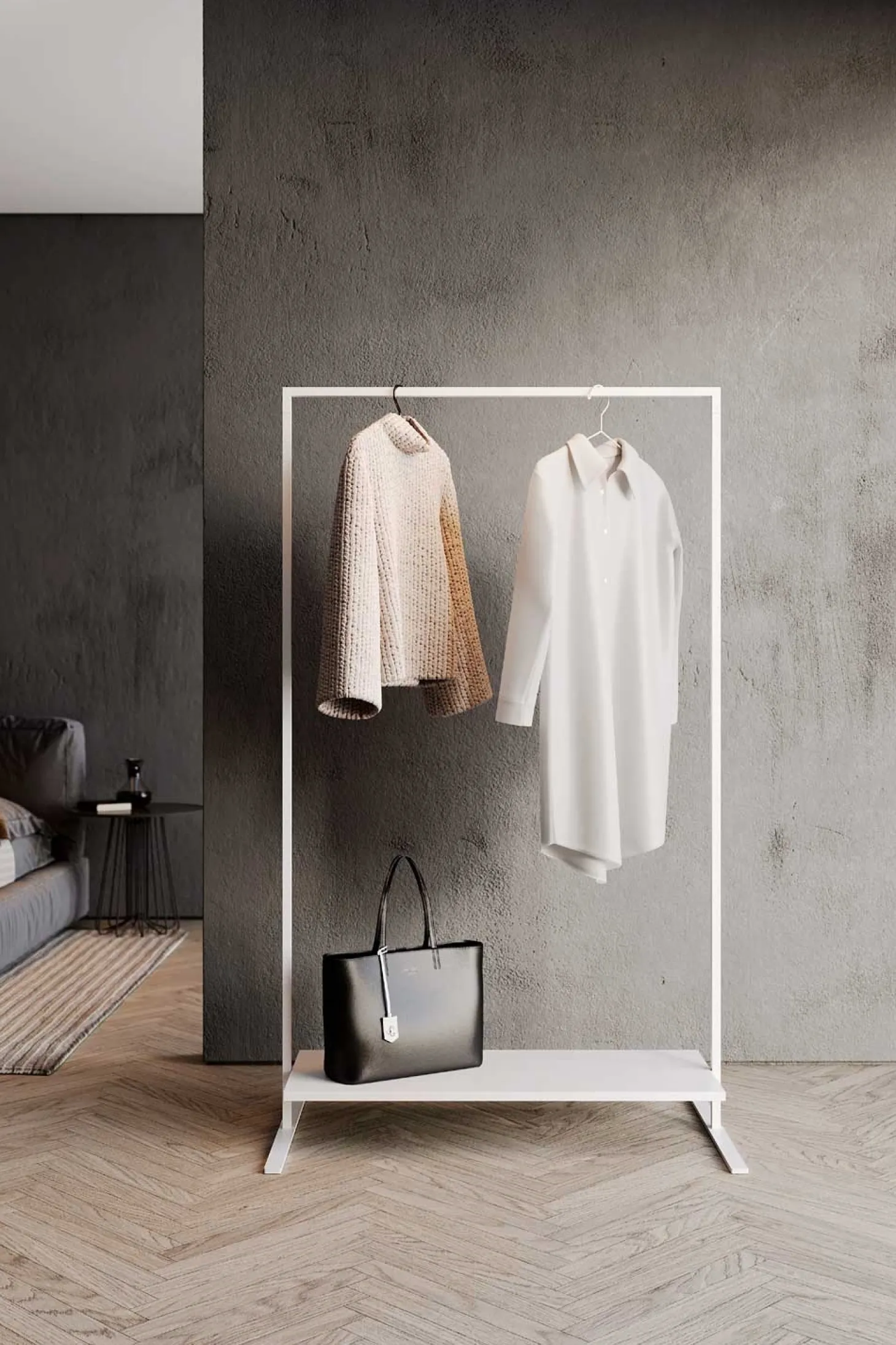 Giv din entré, garderobe eller butik et stilrent løft med Marco 100 – et moderne tøjstativ fra danske Novoform. Det enkle og minimalistiske design i pulverlakeret stål kombinerer æstetik med funktionalitet og passer perfekt ind i både private hjem og professionelle miljøer. Perfekt til dig, der ønsker en funktionel garderobeløsning uden at gå på kompromis med designet.
