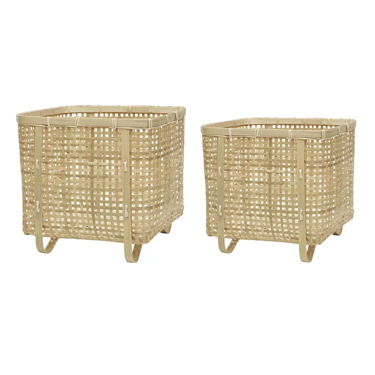 Disse håndvævede bambuskurve giver dig en fleksibel opbevaringsløsning til hjemmet. Sættet består af to kurve i forskellige størrelser, fremstillet af holdbart bambusfletværk, der sikrer god luftcirkulation til dine ting.