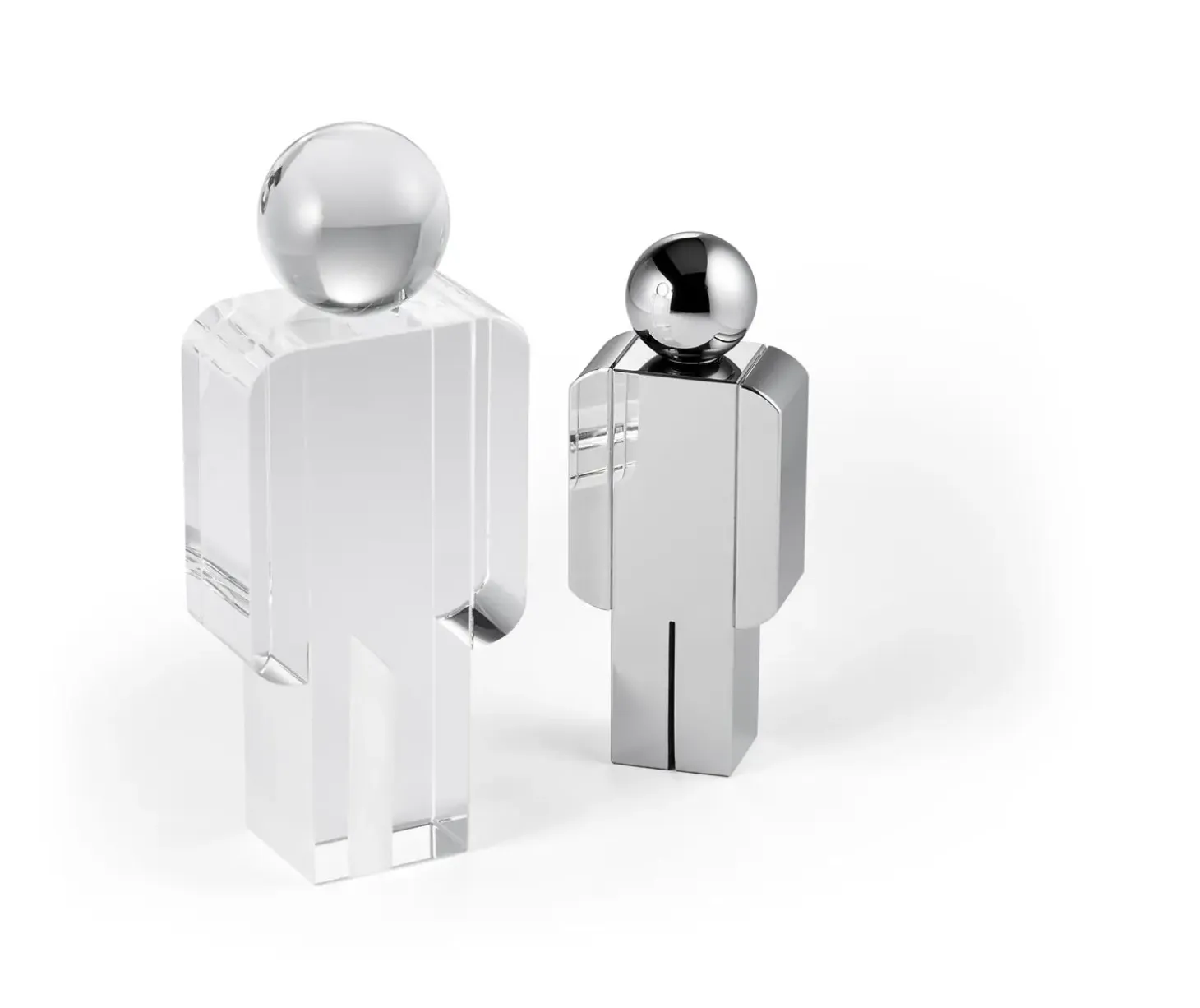 Jonas dekorationsobjektet fra Philippi er fremstillet af to kontrasterende materialer: krystalglas og sort krom. Krystalglasdelen er gennemsigtig, mens den sorte kromdel har en reflekterende overflade. Disse materialer giver objektet en særlig visuel karakter, der kan variere afhængigt af omgivelserne og belysningen i rummet.