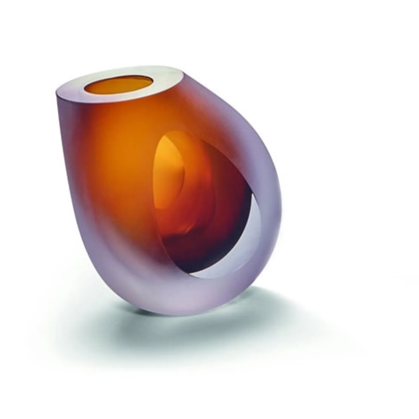 Denne vase er et resultat af omhyggeligt glashåndværk. Den håndpolerede overflade giver den en særlig finish, der fanger og reflekterer lyset. Den særprægede form og farve er resultatet af designarbejde, der balancerer funktion med æstetik.