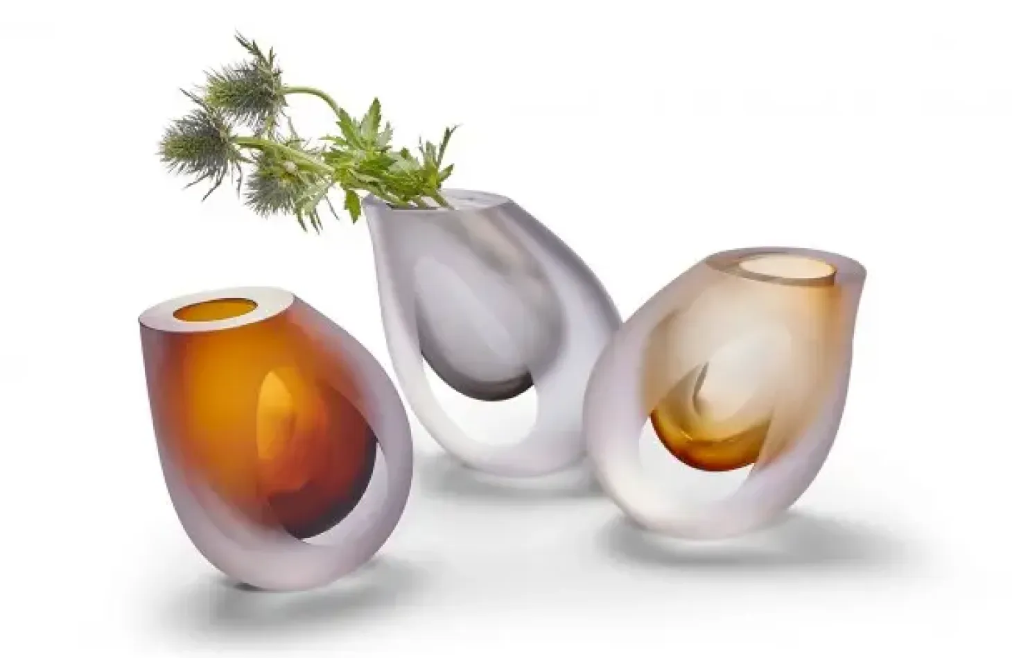 Philippi – Occhio vase, amber er en vase med en distinkt form, der tilfører et strejf af elegance til enhver indretning. Med sin bløde, buede silhuet og varme amberfarve skaber denne vase et iøjnefaldende midtpunkt, der både komplementerer og fremhæver dine blomsterarrangementer.