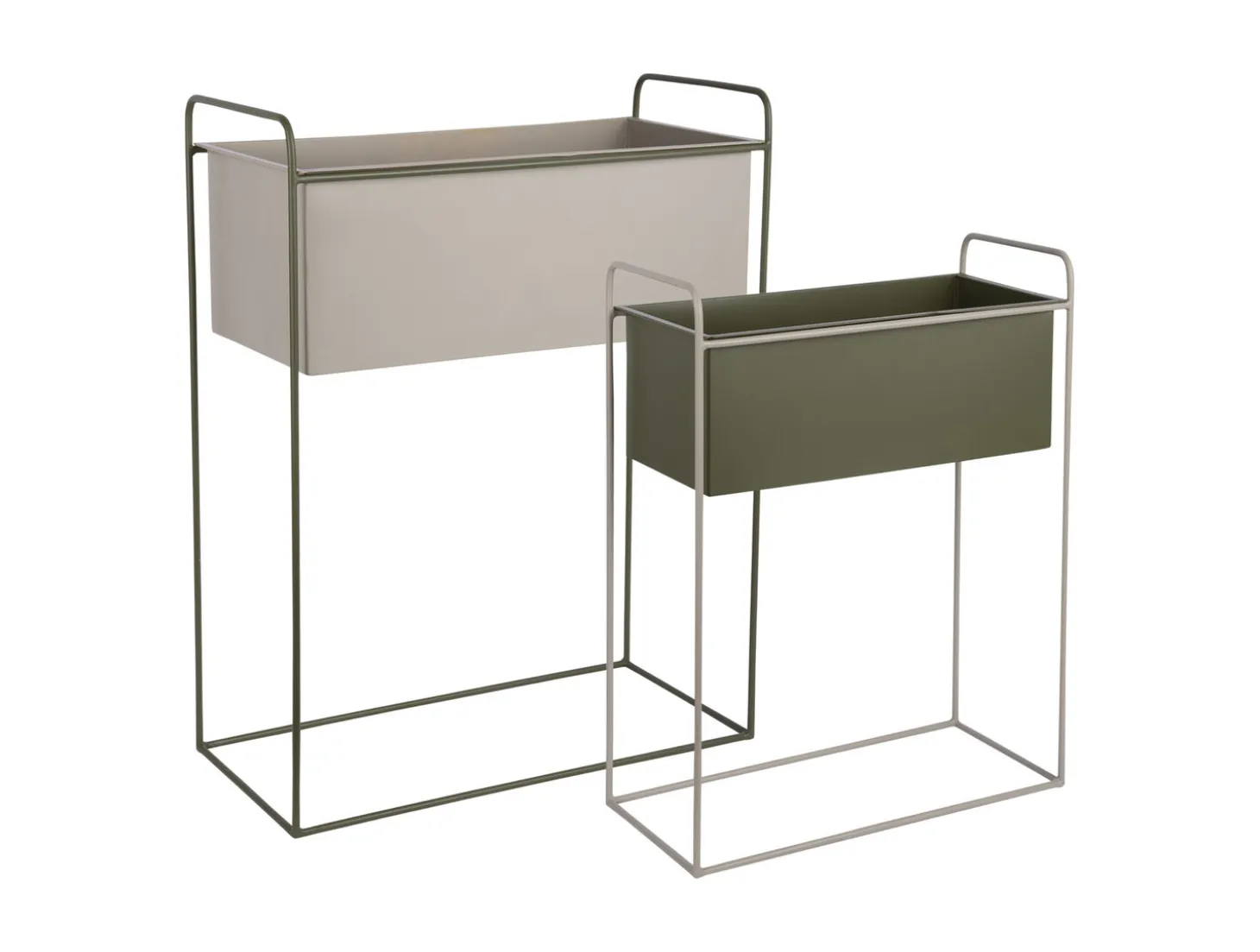 Hvis du har investeret i planter, men mangler en måde at vise dem frem på, der matcher dit moderne hjem, løser dette sæt problemet. Jernkonstruktionen holder vægten af jord og planter uden at bøje sig, og den grågrønne farve integrerer sig naturligt i minimalistiske indretninger.