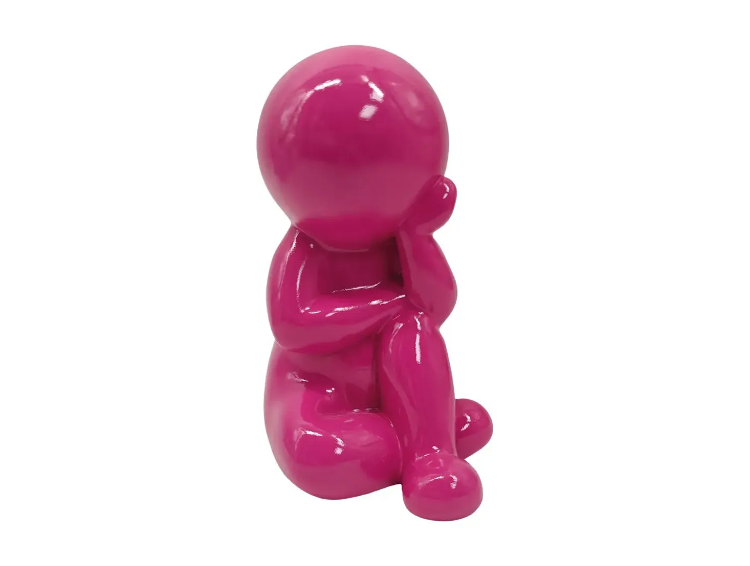 Denne siddende figur i drømmende position er fremstillet af polyresin og kommer i en lys pink farve med en skinnende overflade. Det abstrakte, minimalistiske design med glatte linjer giver et moderne udtryk, der passer til nutidig indretning.