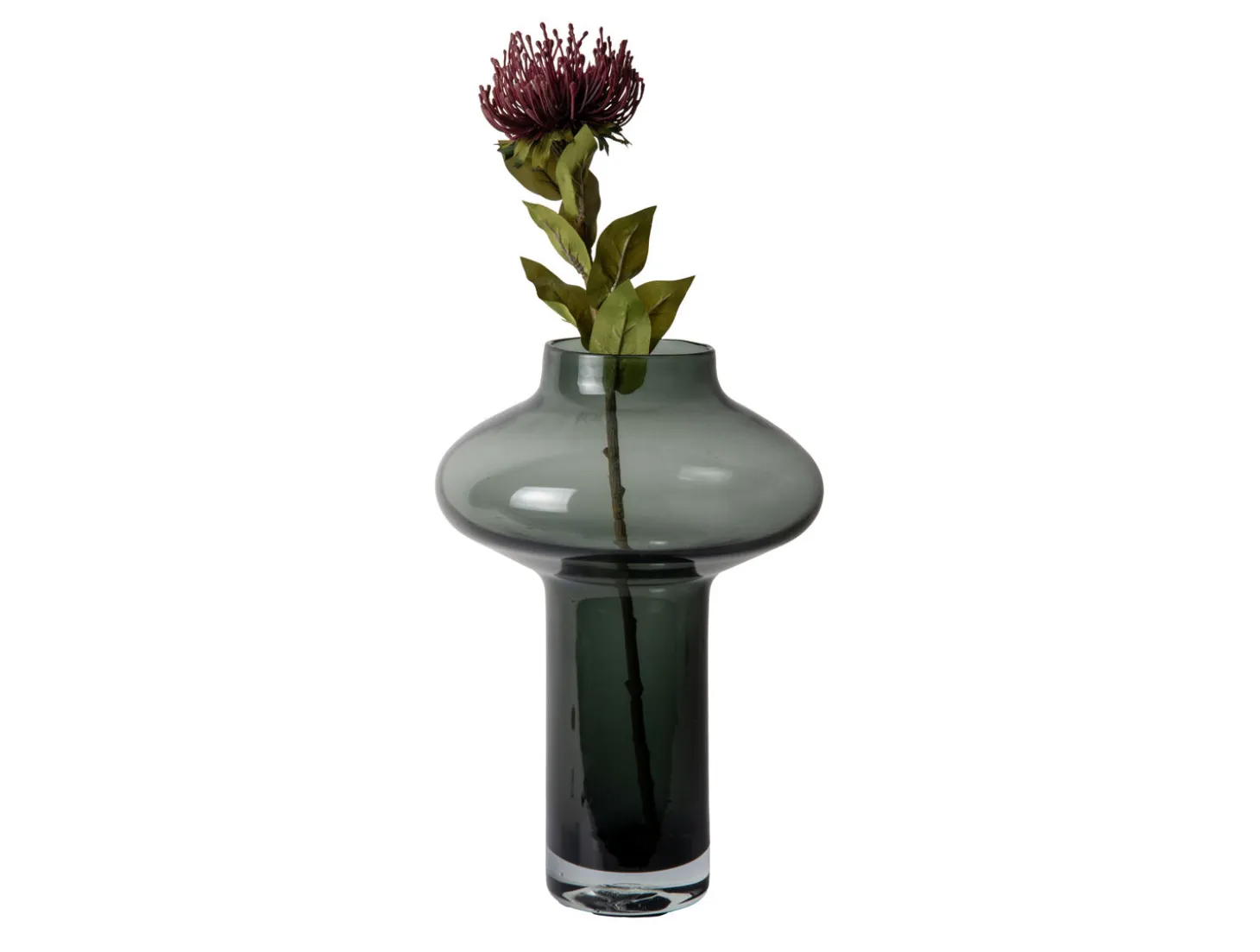 Glas giver vasen en ren overflade, der er nem at holde ren, og som ikke absorberer vand eller lugt. Den mørkegrå farve fungerer som en neutral base, der passer til både lyse og mørke farveskemaer i moderne hjem. Materialet sikrer også, at vasen holder sin farve over tid.