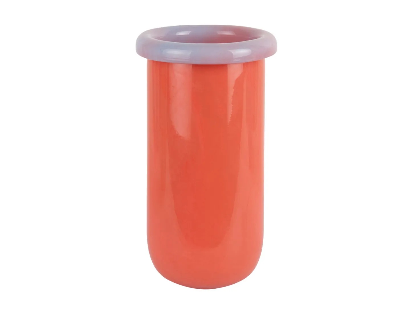 Hvis du leder efter en specifik farve til din indretning, giver den lyse orange krop med den bløde lilla kant dig en klar æstetisk profil. Farvekombinationen gør det nemmere at matche vasen med moderne interiør, hvor du ønsker et iøjnefaldende element, uden at du skal gætte på, om farven passer.