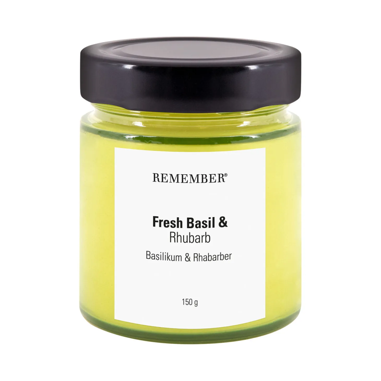 Remember’s duftlys Fresh Basil & Rhubarb bringer en unik blanding af basilikum og rabarber ind i dit hjem. Dette håndlavede lys er lavet af 100% sojavoks og giver en behagelig duft. Den forfriskende aroma af basilikum, kombineret med den syrlige note af rabarber, skaber en harmonisk balance, der stimulerer sanserne.