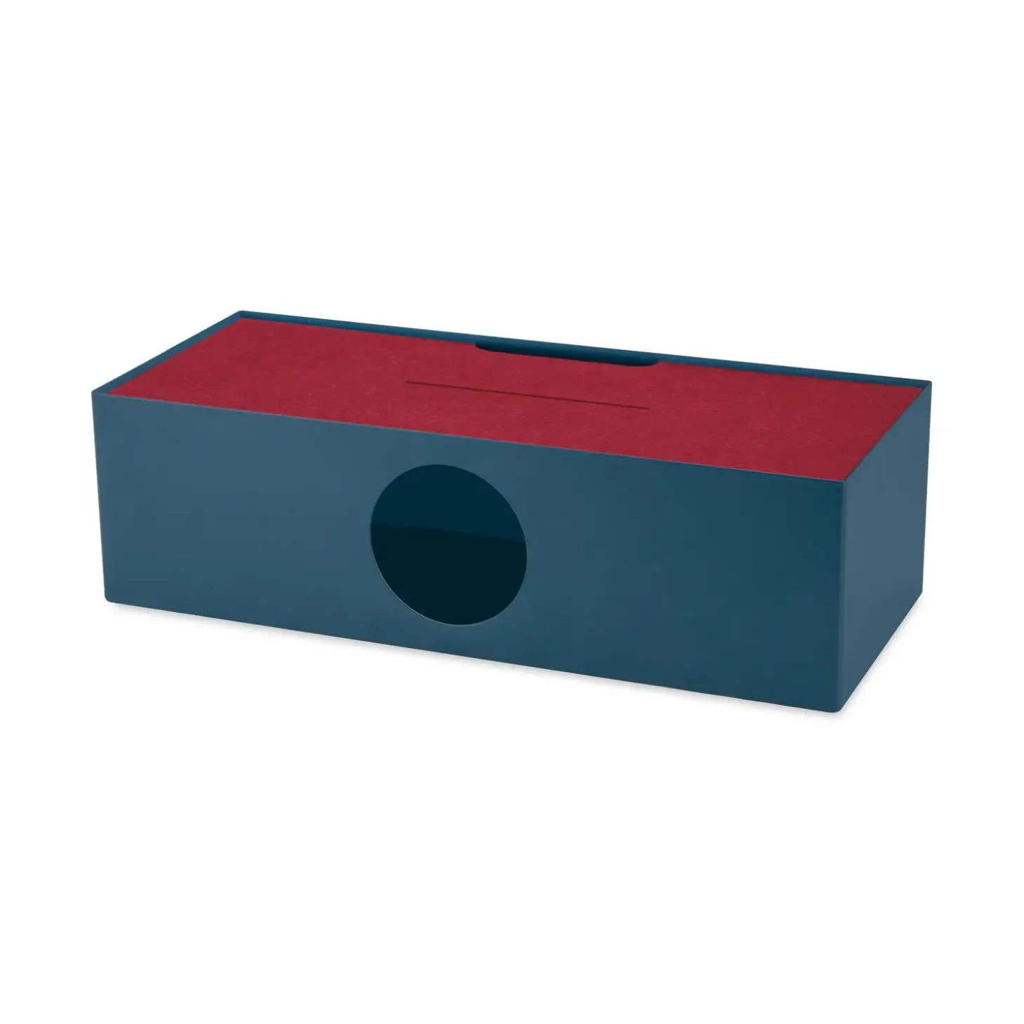 Med denne kabelboks får du en praktisk løsning til at organisere dine elektroniske enheder. Placeringen af smartphones og tablets på filtcoveret under opladning giver ekstra beskyttelse og et samlet, organiseret udtryk i ethvert rum. Denne stilfulde og funktionelle kabelboks bidrager til at skabe orden og ro i dit digitale liv ved at gemme kabler og tilbehør af vejen, samtidig med at de forbliver let tilgængelige. Den dybe blå farve tilføjer et elegant touch til dit hjem eller kontor, mens den effektivt løser udfordringen med kabelrod.