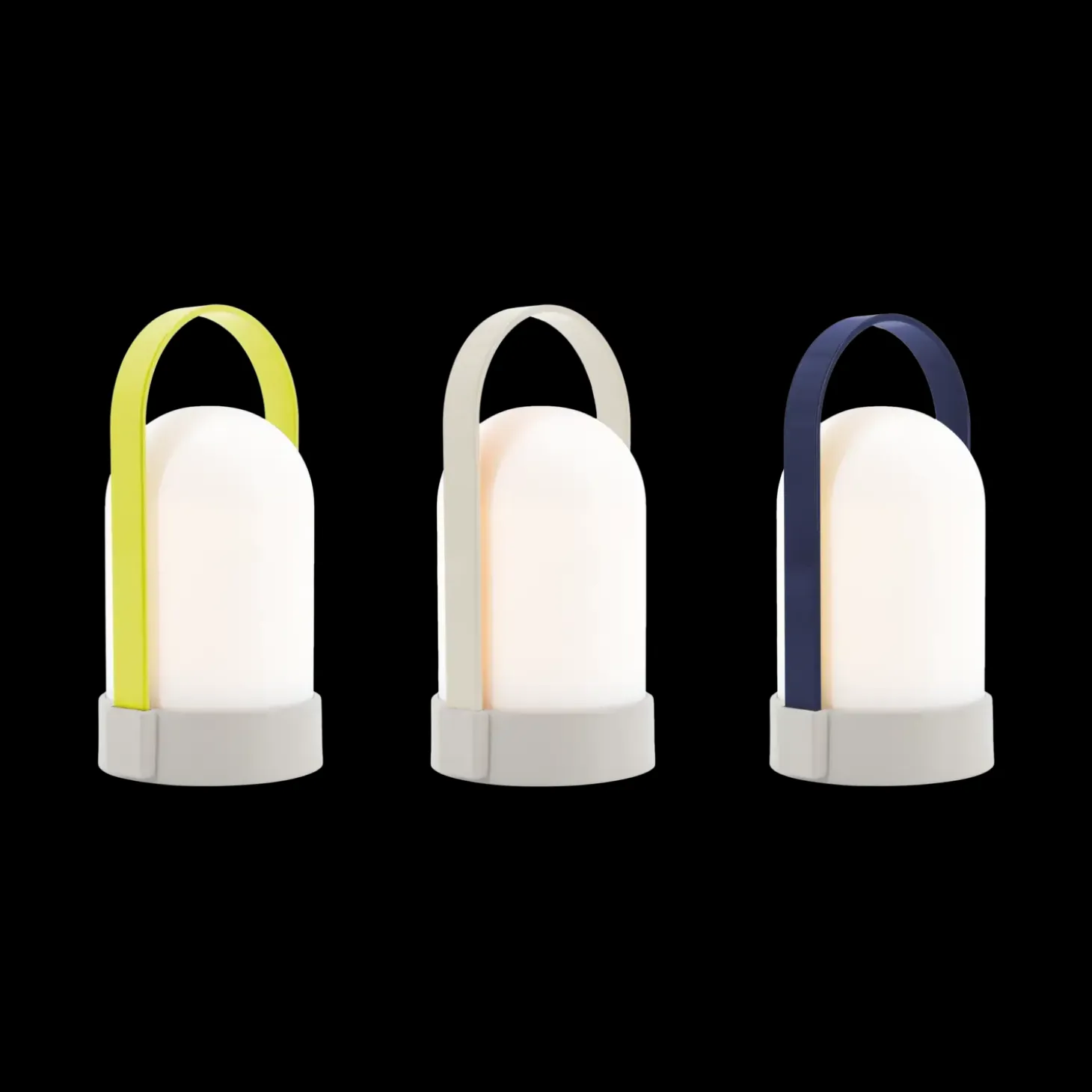 URI Piccolos No. 31 er et sæt med tre kompakte lamper, der giver dig mulighed for at skabe den rette stemning i hjemmet. Hver lampe har et bærehåndtag i beige, mørkeblå eller gul, hvilket gør dem nemme at flytte rundt efter behov. Disse LED-lamper er perfekte til at belyse spisebordet, køkkenet, stuen, terrassen og andre områder i dit hjem eller have.