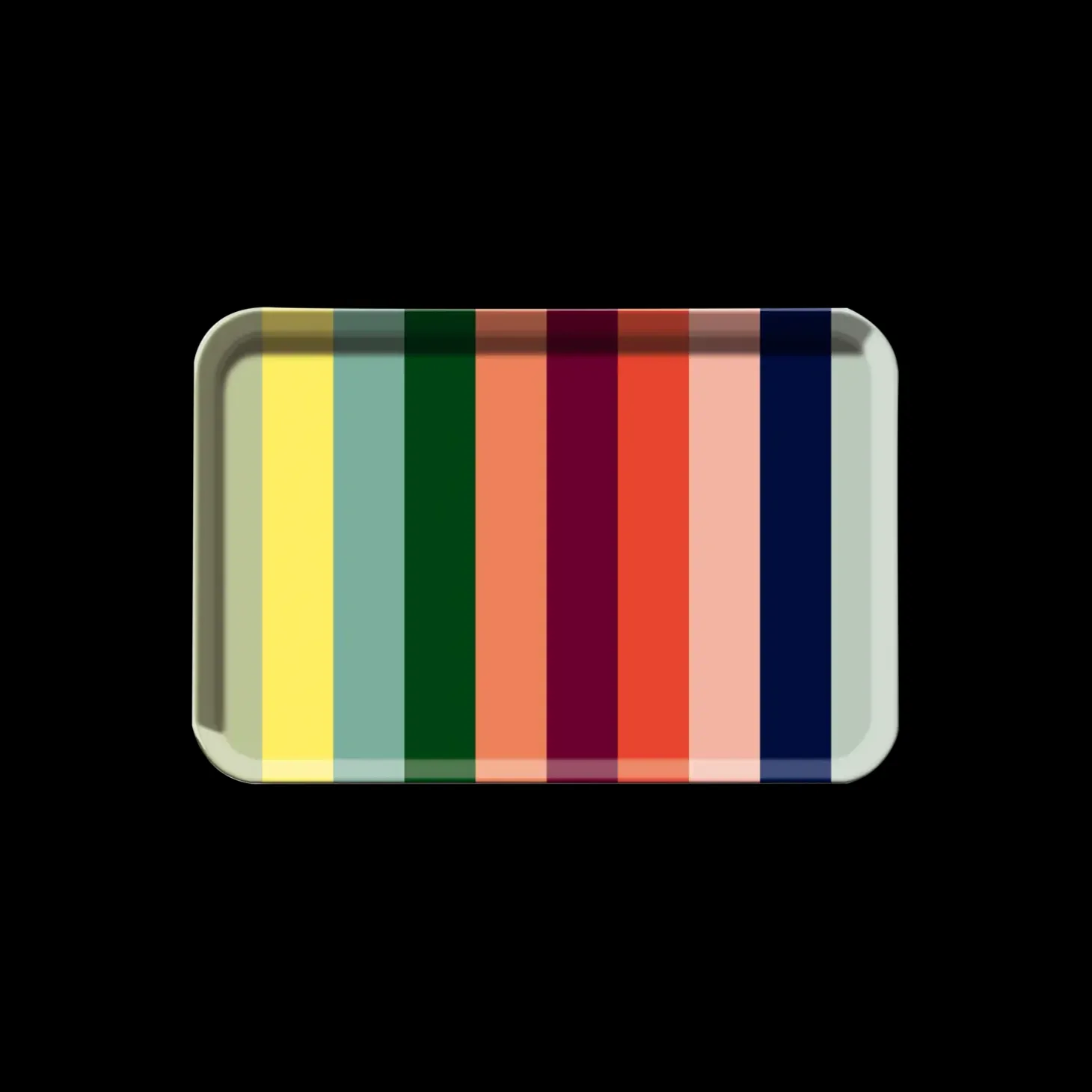 Lorenzo-bakken kombinerer æstetik med funktionalitet. Den blanke finish giver et ekstra touch af elegance og fremhæver de livlige farver i det stribede mønster. Overfladen er ikke kun smuk at se på, men også praktisk i dagligdagen. Melaminmaterialet gør bakken let og håndterbar, hvilket er ideelt til servering eller som dekorativt element.