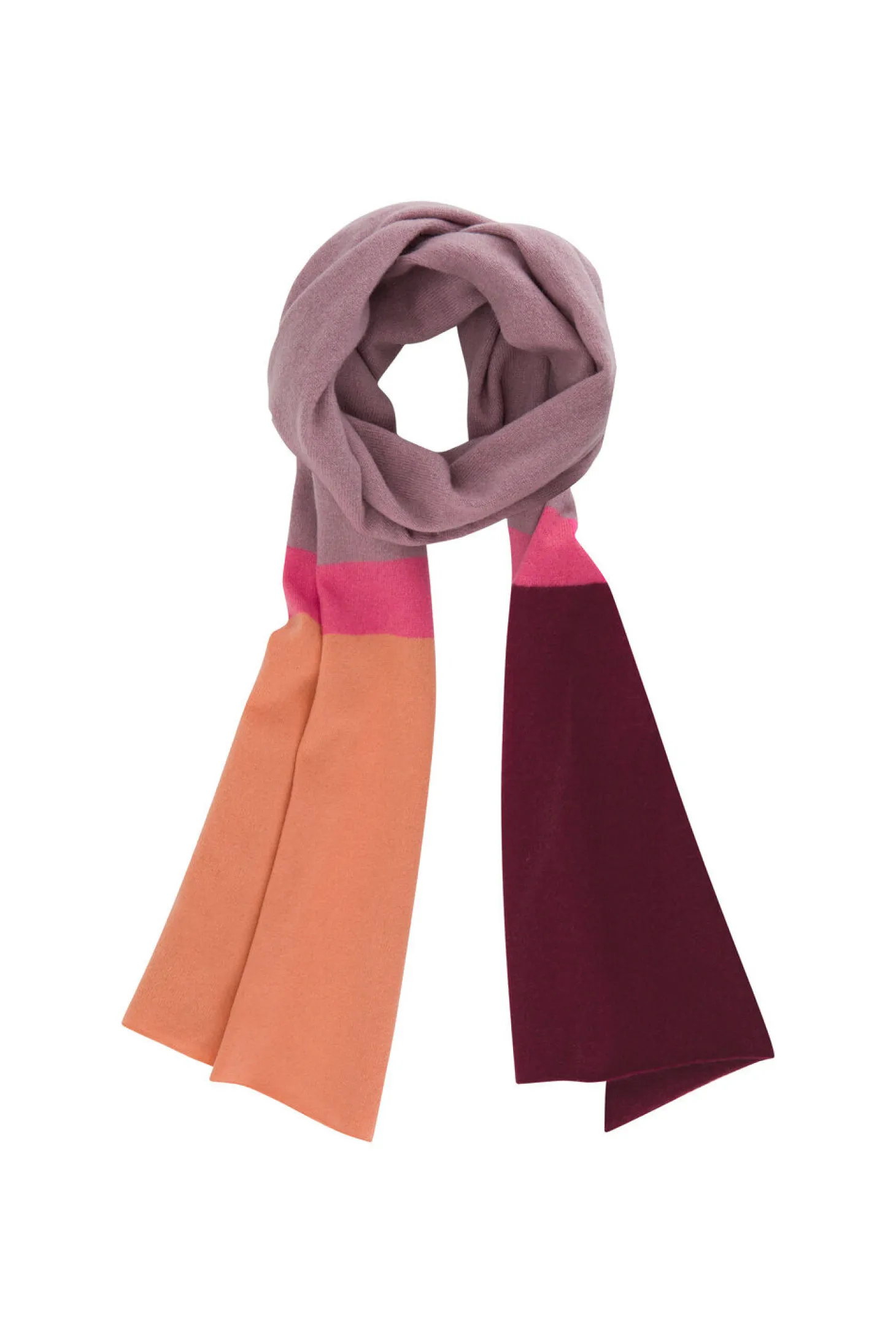 Vreni-tørklædet er et stilfuldt tilbehør, der tilføjer farve til din vintergarderobe. Med sit farveblokdesign i pink, orange og bordeaux er dette tørklæde designet til at fremhæve ethvert outfit. Kombinationen af farver gør det til et iøjnefaldende stykke, der udtrykker din personlige stil med elegance.