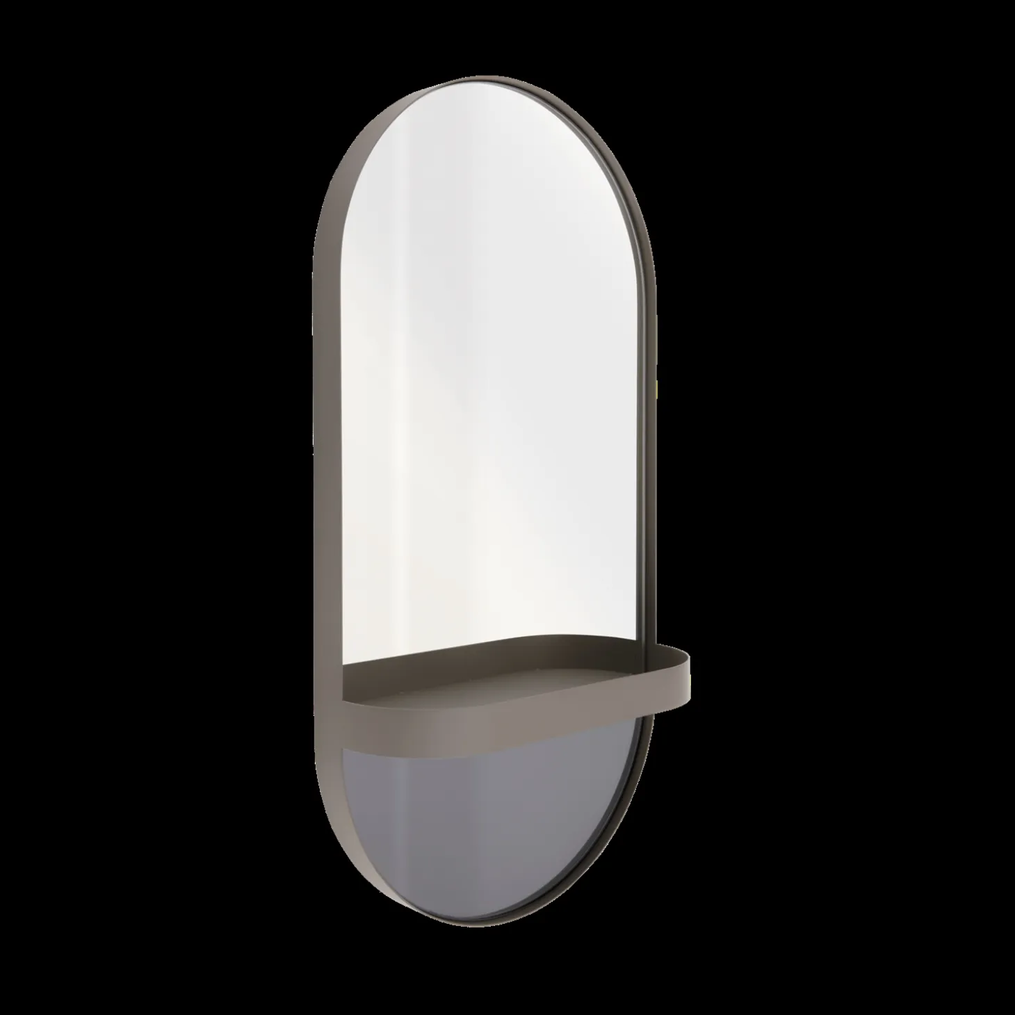 - Integreret hylde, der adskiller den klare spejloverflade fra det farvede spejlglas