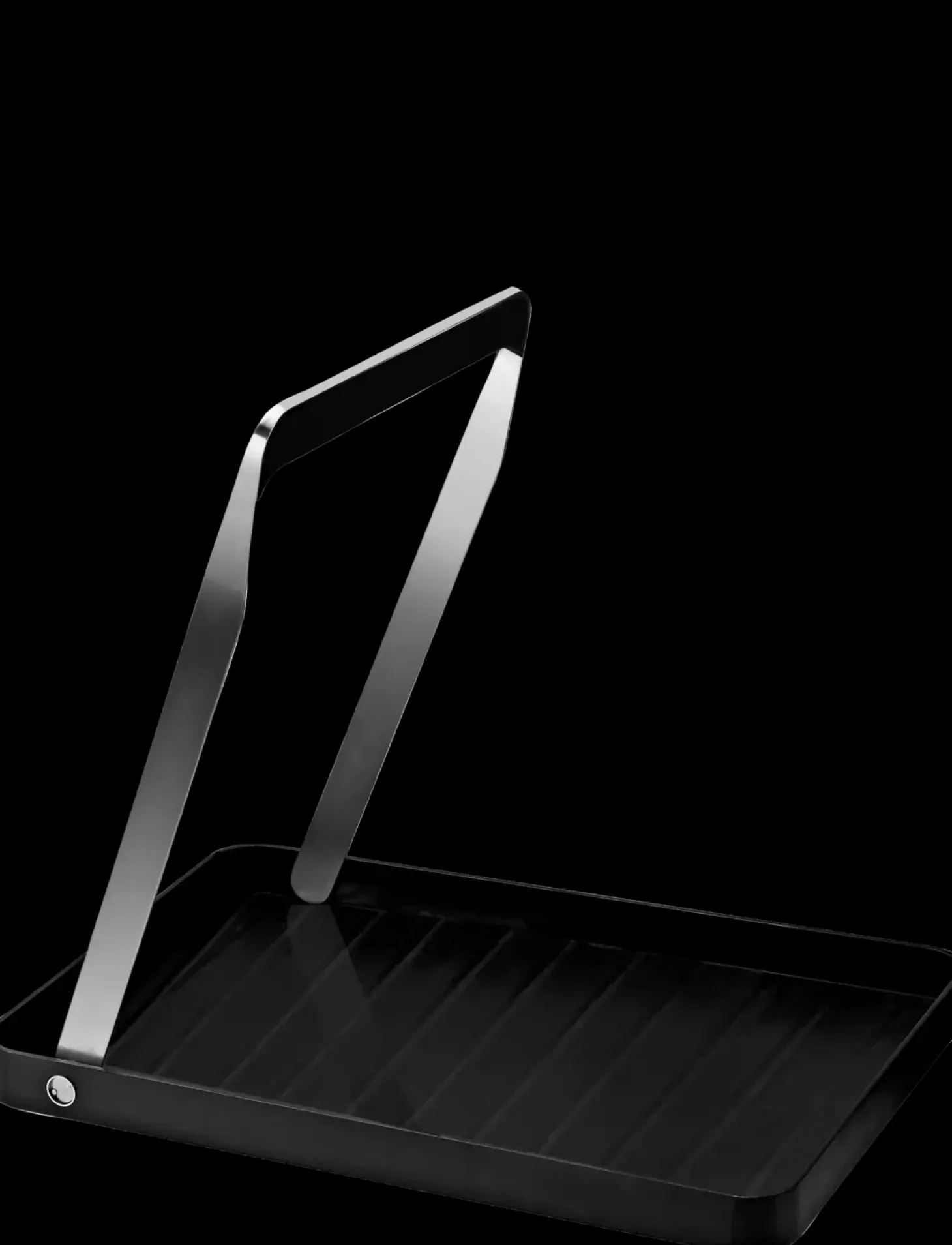 Take Away serveringsbakken er den praktiske medhjælper til at bære ting fra køkken til opholdsstue eller udendørs til en picnic. Grebet i rustfrit stål kan foldes ned i selve bakken og foldes op til en ergonomisk rigtig stilling, når bakken er i brug. Overfladen er gummibelagt så glas, karafler og tallerkner ikke glider.