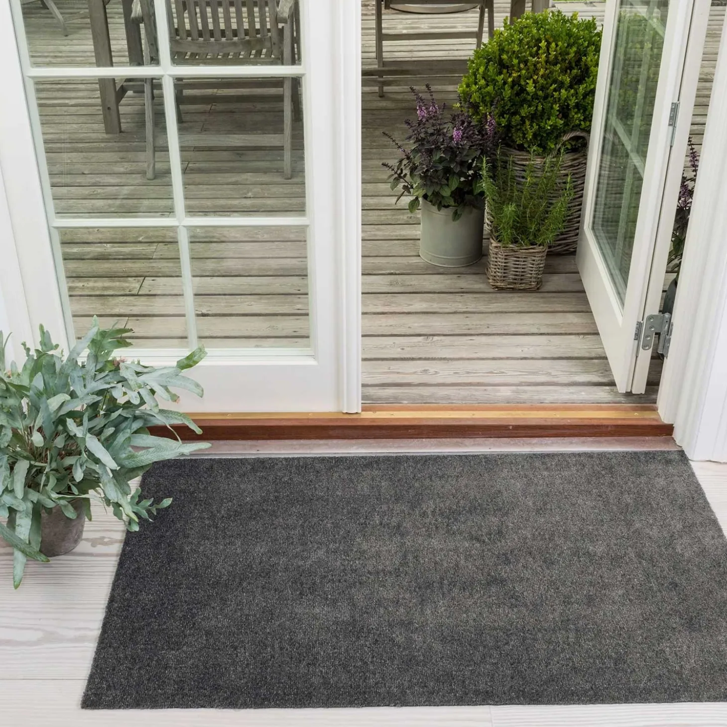 Bagsiden er en phthalatfri vinyl/PVC som medvirker til at måtterne altid ligger stabile på gulvet uden af rutsje rundt. Måtterne rengøres nemt ved støvsugning, skylning/spuling eller maskinvask ved max 30 grader. Den er meget holdbar og let at rengøre.