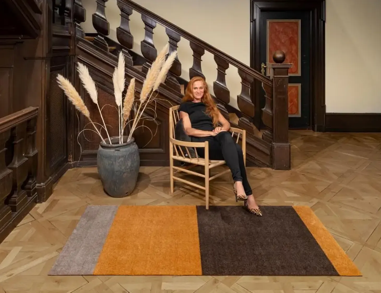 Tica Copenhagen – Smudsmåtte – Stripes Horizon – Sand/Brun/Dijon – 90×130 cm
