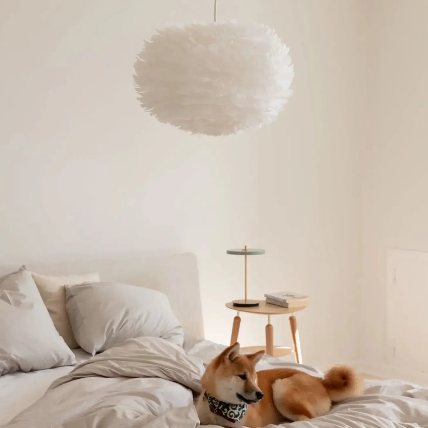 Fjerene på Eos lampen er ægte fjer og kun fra gæs, der er døde. Gæssene er ikke slagtet pga. lamperne, men i forbindelse med fødevareindustrien.