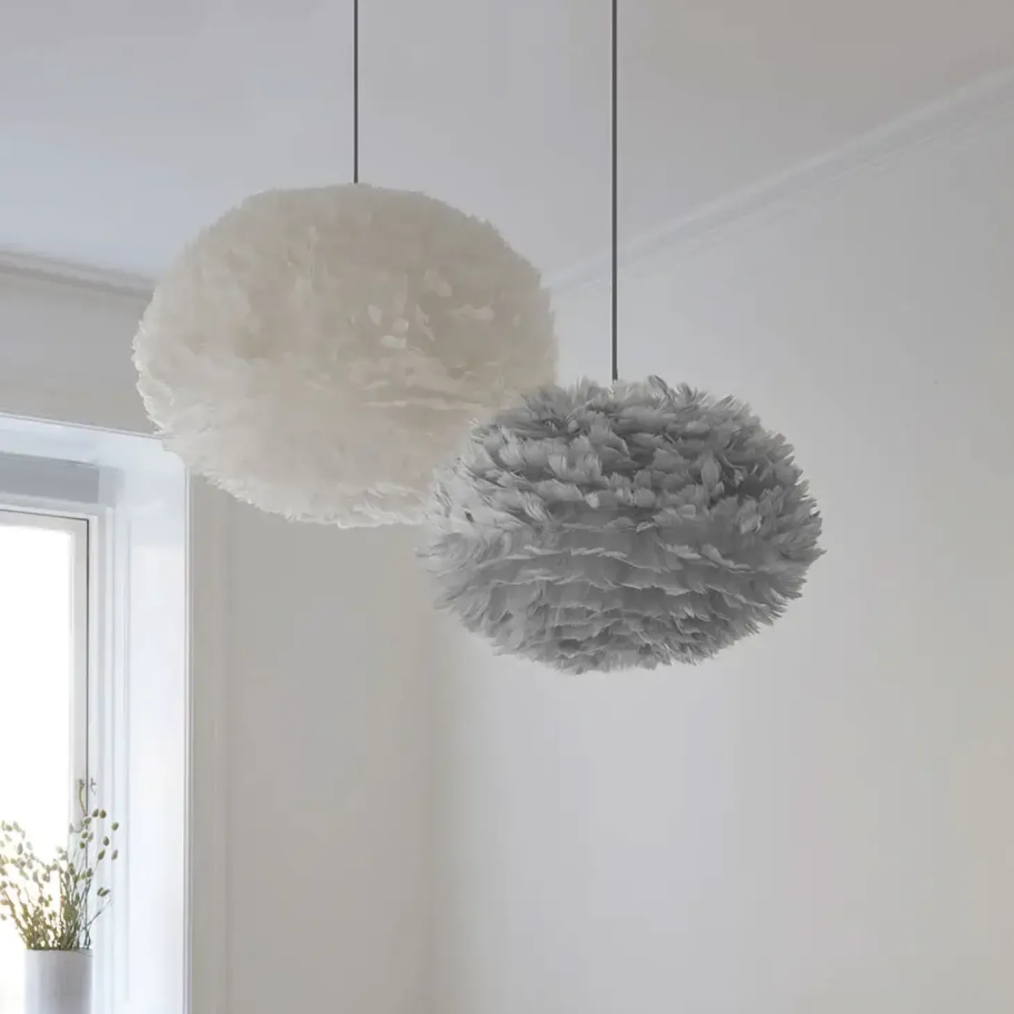 Fjerene på Eos lampen er ægte fjer og kun fra gæs der er slagtet i forbindelse med fødevareindustrien.